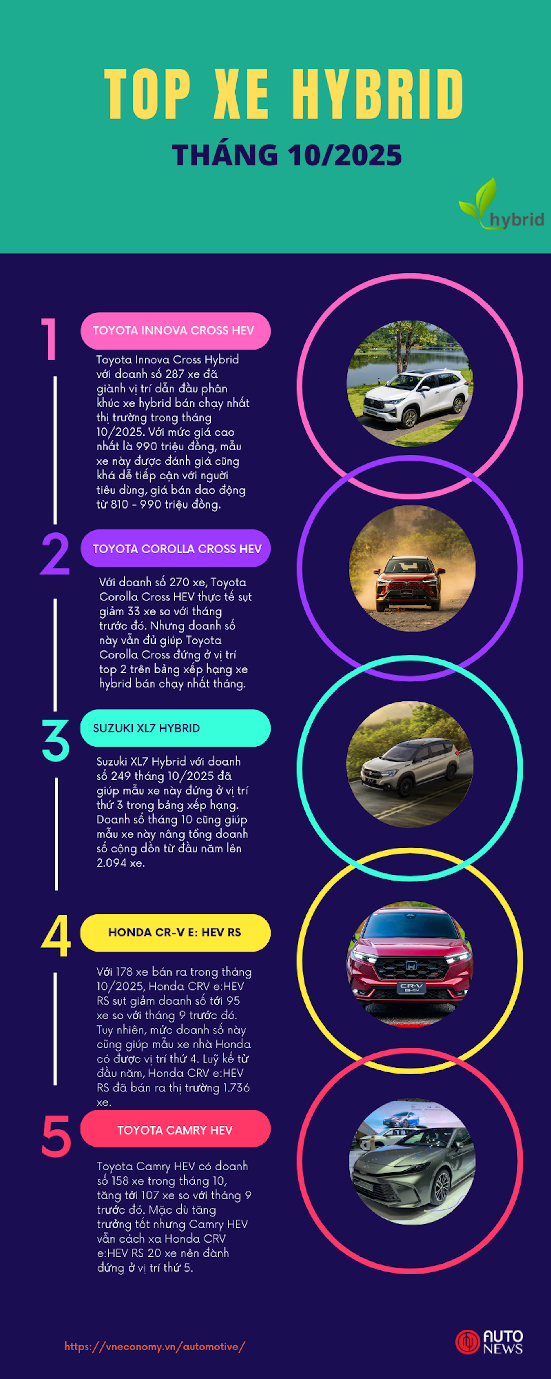 Top xe hybrid bán chạy nhất thị trường Việt tháng 10/2025