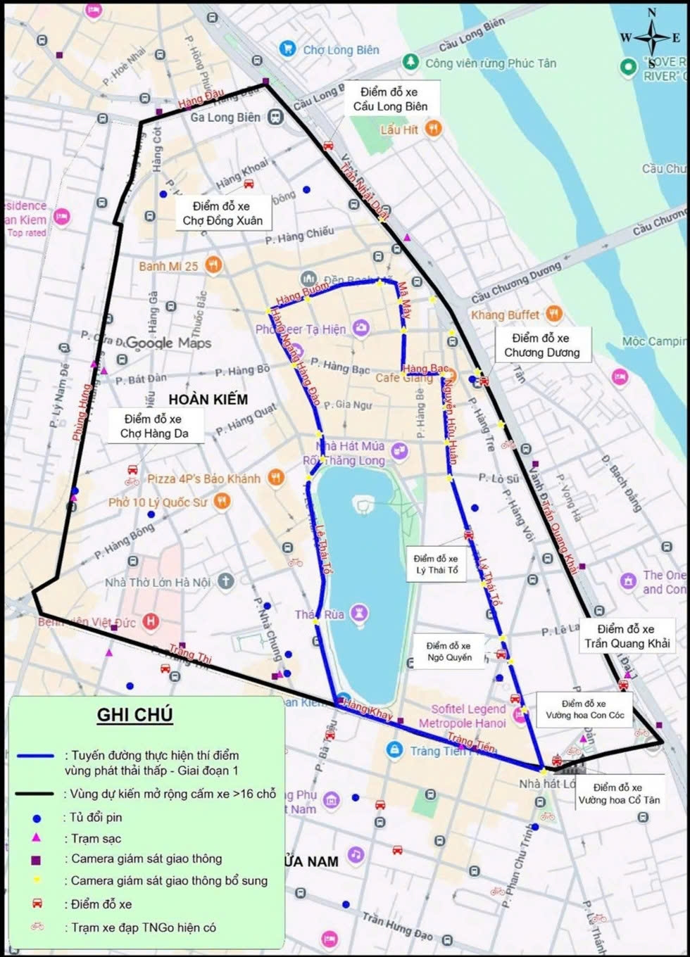 Theo dự thảo tờ trình của UBND TP Hà Nội về đề án Vùng phát thải thấp trong vành đai 1, sẽ chia thành 3 giai đoạn, từ 1/7/2026, thành phố sẽ triển khai thí điểm vùng phát thải thấp tại phường Hoàn Kiếm. Trong đó 11 tuyến phố ở phường Hoàn Kiếm được đề xuất thí điểm vùng phát thải thấp và cấm xe máy xăng từ 18h đến 24h thứ sáu và từ 6h đến 24h thứ bảy, chủ nhật.