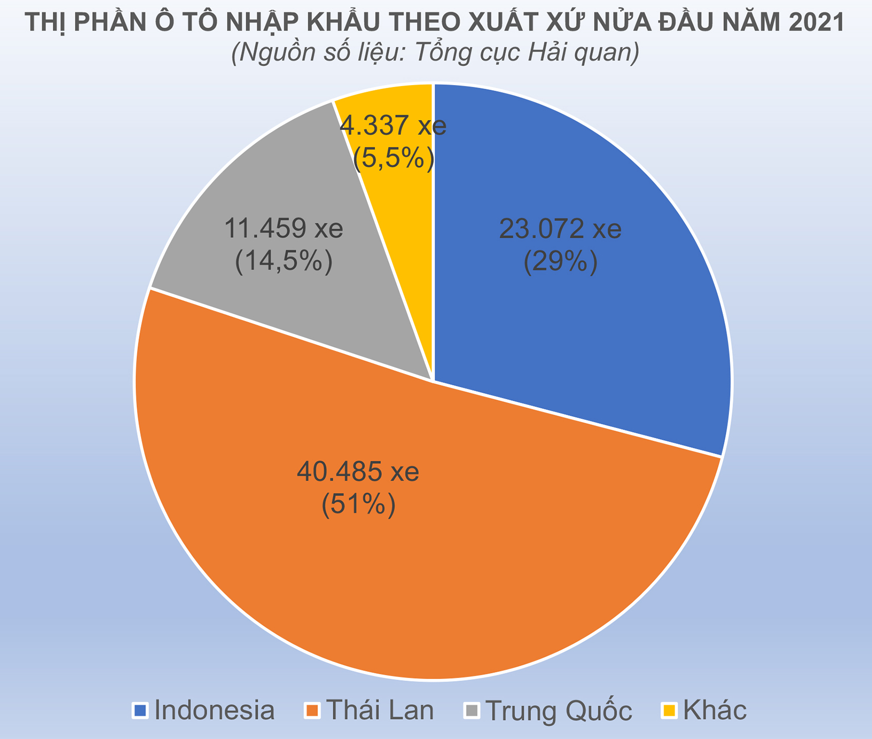 Cụ thể, đã có 40.485 xe nhập khẩu từ Thái Lan trong nửa đầu năm, đạt giá trị gần 758 triệu USD. Đứng thứ hai là Indonesia với số lượng 23.072 chiếc và hơn 287 triệu USD.