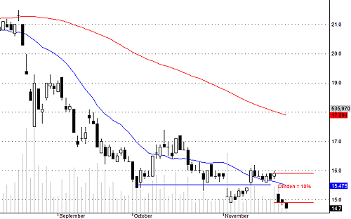 Giá 14.7 chỉ bị chạm tới từ 1h30 trở đi, nhưng khớp tới 207k, chiếm 39% tổng Vol thì không phải là nhỏ. So với cầu hôm nay, lượng bán hạ giá đã áp đảo được. SSI vẫn còn được xếp mua dày ở hai mức giá 14.6-14.7 nhưng bán đã quyết chạy cả 14.7 (111k lúc đóng cửa). Cũng giống VCG, quyết tâm bán dưới tham chiếu của SSI đã mạnh hơn so với vài phiên trước, tạo cơ hội cho test cung cầu thực sự ở 14.5-14.6, tương đương vùng hỗ trợ cũ ở 15.5-15.6.