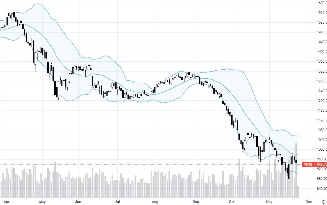 VN30 chốt hôm nay tại 938.73. Cản gần nhất ngày mai là 940; 946; 952; 961; 970. Hỗ trợ 931; 926; 919; 913; 905.