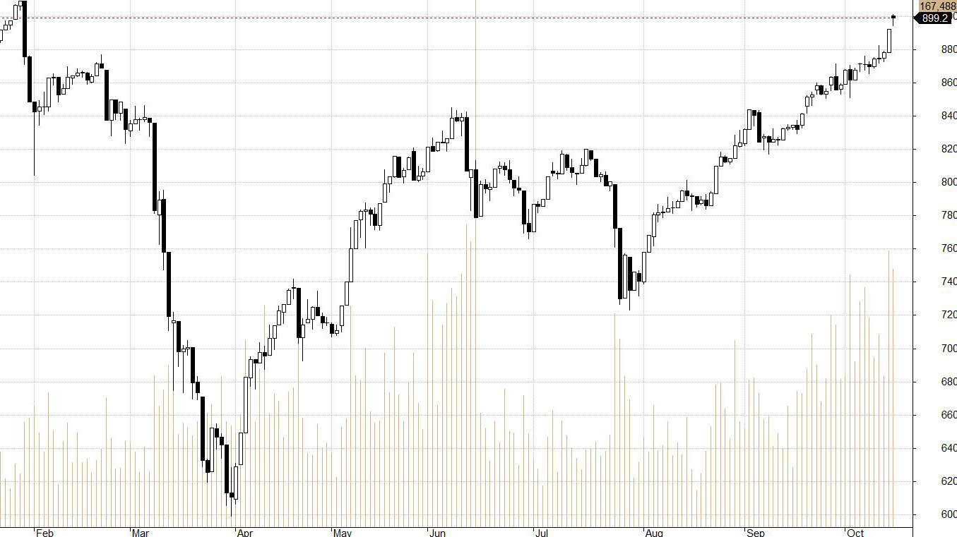 Ở những thời điểm có nhiều tin hỗ trợ như lúc này, điều quan trọng nhất là nghĩ về phía bán: Với mức thanh khoản cực cao tức là có nhiều nhà đầu tư không muốn giữ cổ phiếu lại nữa. Lợi nhuận doanh nghiệp chỉ là một cái cớ để lôi kéo sức cầu nhiều hơn, tạo thuận lợi cho việc chốt lời. Các yếu tố cơ bản có thể thay đổi sau khi cộng thêm kết quả kinh doanh quý 3, nhưng trong ngắn hạn, cung cầu mới là yếu tố chi phối.