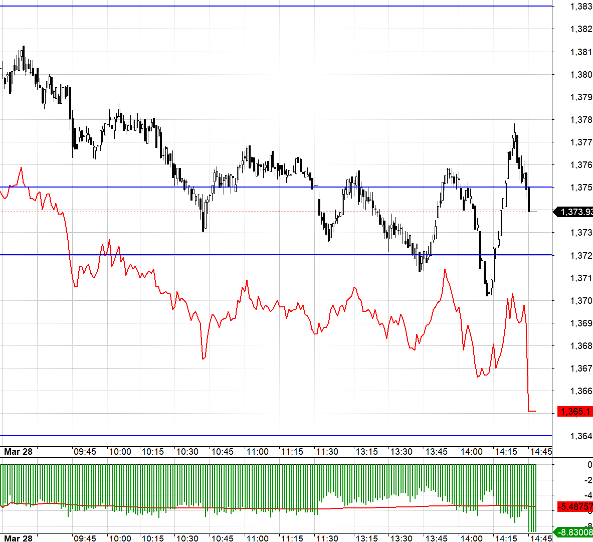 VN30 chốt hôm nay tại 1373.93. Cản gần nhất phiên tới là 1374; 1383; 1391; 1395. Hỗ trợ 1366; 1360; 1350; 1344; 1335.