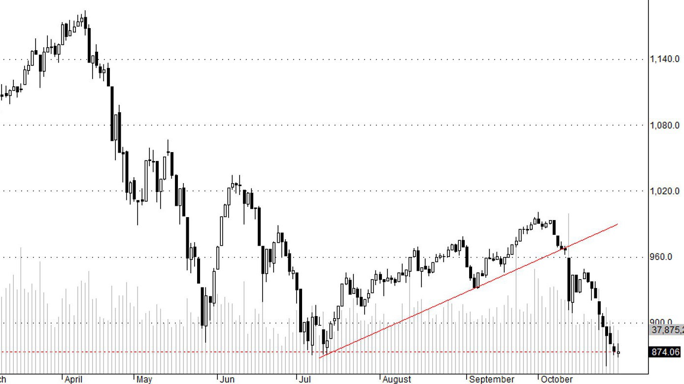 Trạng thái phục hồi tích cực trong buổi sáng đã hoàn toàn biến mất chiều nay khi các cổ phiếu dẫn dắt bị ép mạnh. VN-Index lao dốc với tốc độ cao, thúc đẩy tâm lý sợ hãi, kéo theo đợt bán tháo trên diện rộng. Chỉ số đóng cửa giảm 1,38% và rơi xuống mức 1617 điểm, chính thức bước vài giai đoạn thử thách vùng hỗ trợ quanh mốc 1600 điểm.