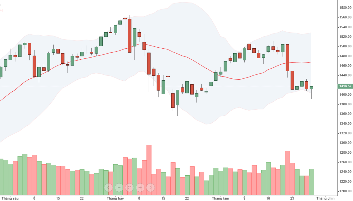 VN30 kết phiên hôm nay tại 1418.57, ngay tại một ngưỡng. Cản kế tiếp là 1423; 1426; 1429; 1432; 1436; 1441; 1446; 1451; 1456. Hỗ trợ 1416; 1411; 1406; 1401; 1394; 1391.