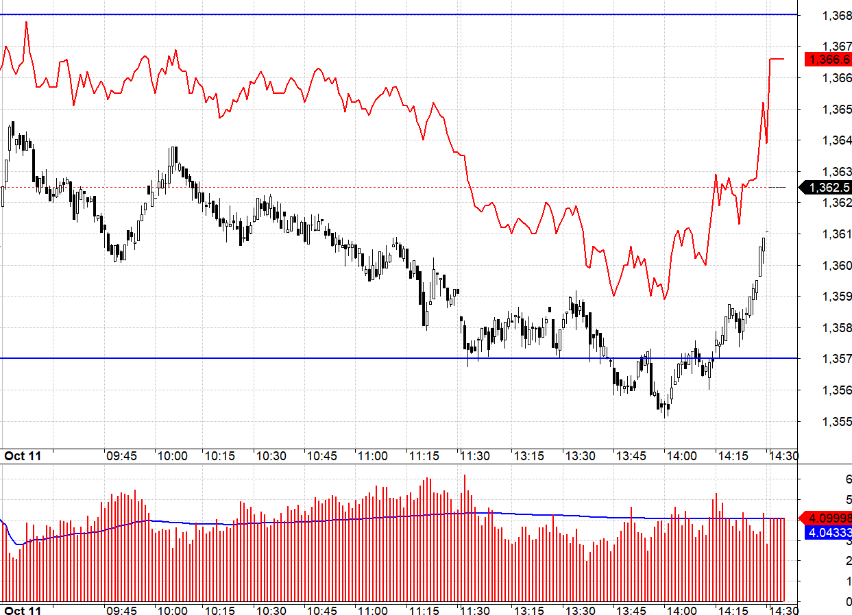 Thị trường phái sinh hôm nay vẫn rất khó chơi, không có setup nào đạt chuẩn cả. VN30 dao động trong biên độ 1368.xx tới 1357.xx nhưng basis chênh lệch quá rộng, Short hay Long đều khó. Buổi sáng chiều trượt giảm dần của VN30 xuống 1357.xx là rất rõ nhưng F1 không giảm bao nhiêu, phần lớn chỉ giảm nửa đầu phiên chiều. Cơ hội duy nhất là vào Long lúc VN30 vòng lại lên trên 1357.xx thì basis cũng chênh hơn 4 điểm mà không rõ khả năng kéo trụ sẽ như thế nào trong khi thời gian còn lại quá ít.