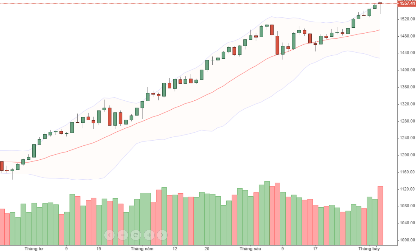 Vn30 chốt hôm nay tại 1557.41. Cản trước mắt là 1561; 1566; 1572; 1575; 1579; 1586; 1591. Hỗ trợ 1553; 1549; 1544; 1539; 1535; 1531; 1523.