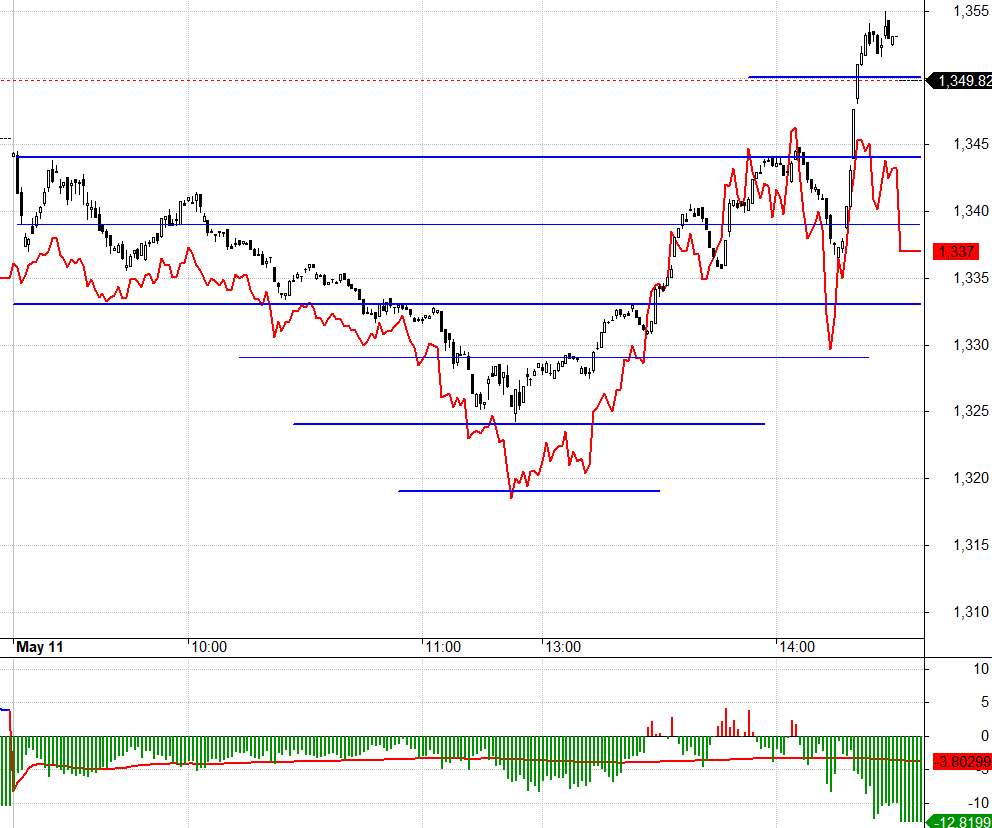 VN30 đóng cửa hôm nay tại 1349.82, ngay sát mốc 1350. Cản kế tiếp ngày mai là 1355; 1360; 1364; 1371; 1379; 1384; 1394. Hỗ trợ 1344; 1340; 1333; 1328; 1324; 1320; 1314.