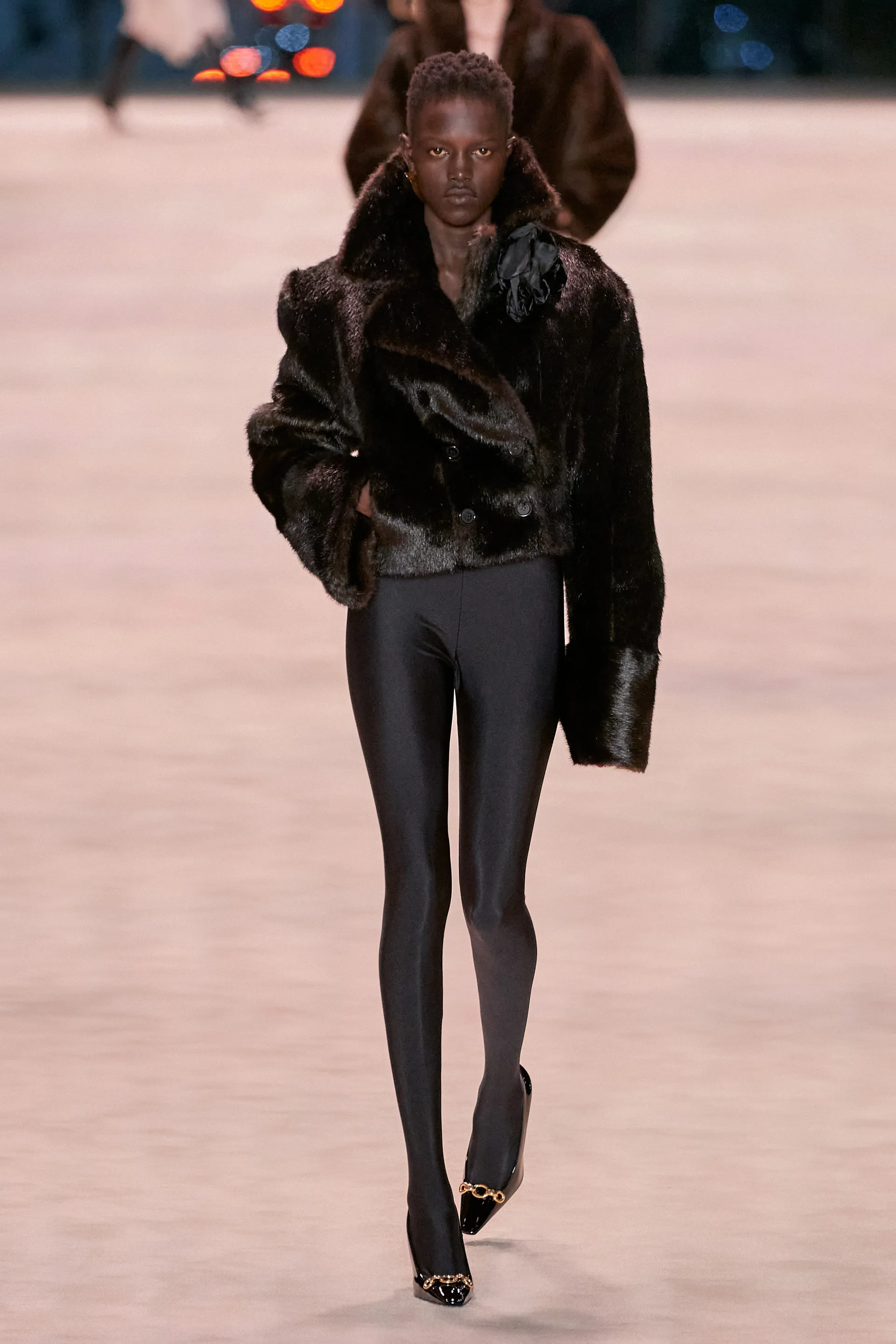 Tập đoàn Kering và thương hiệu Saint Laurent đã quán triệt việc ngừng sử dụng chất liệu lông thú thật. Thay vào đó, họ sử dụng các chất liệu tổng hợp để tái hiện sự xa xỉ khó cưỡng từ những chiếc áo lông thú trước kia. Với BST Saint Laurent Thu - Đông 2022, giới mộ điệu có thể chiêm ngưỡng vẻ đẹp kinh điển được tái thiết ở thời hiện tại, nhưng không cần đánh đổi với sự sống còn của môi trường. Vì thế, bên cạnh sử dụng da, dây buộc và vải tuyn, thương hiệu còn kết hợp lông thú giả vào các thiết kế khác nhau. Vaccarello đã tạo ra những bộ lông giả được thiết kế một cách tinh xảo với độ dày nhất định.