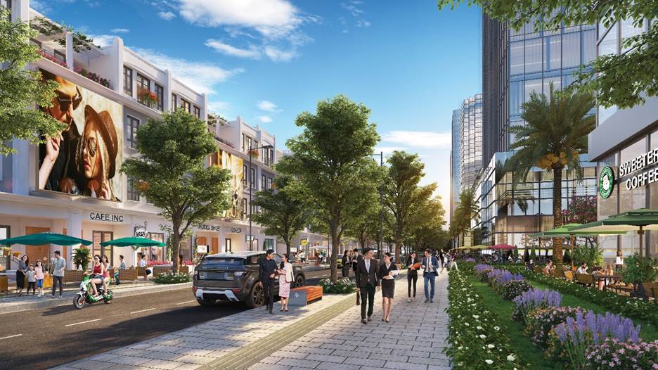 Những căn nhà phố 2 mặt tiền với thiết kế hiện đại, chung một dáng dấp, được sắp xếp dọc ngang như một bàn cờ, thuận tiện cho việc đi lại, giao thương, gợi nhớ đến hình ảnh 36 phố Hàng.