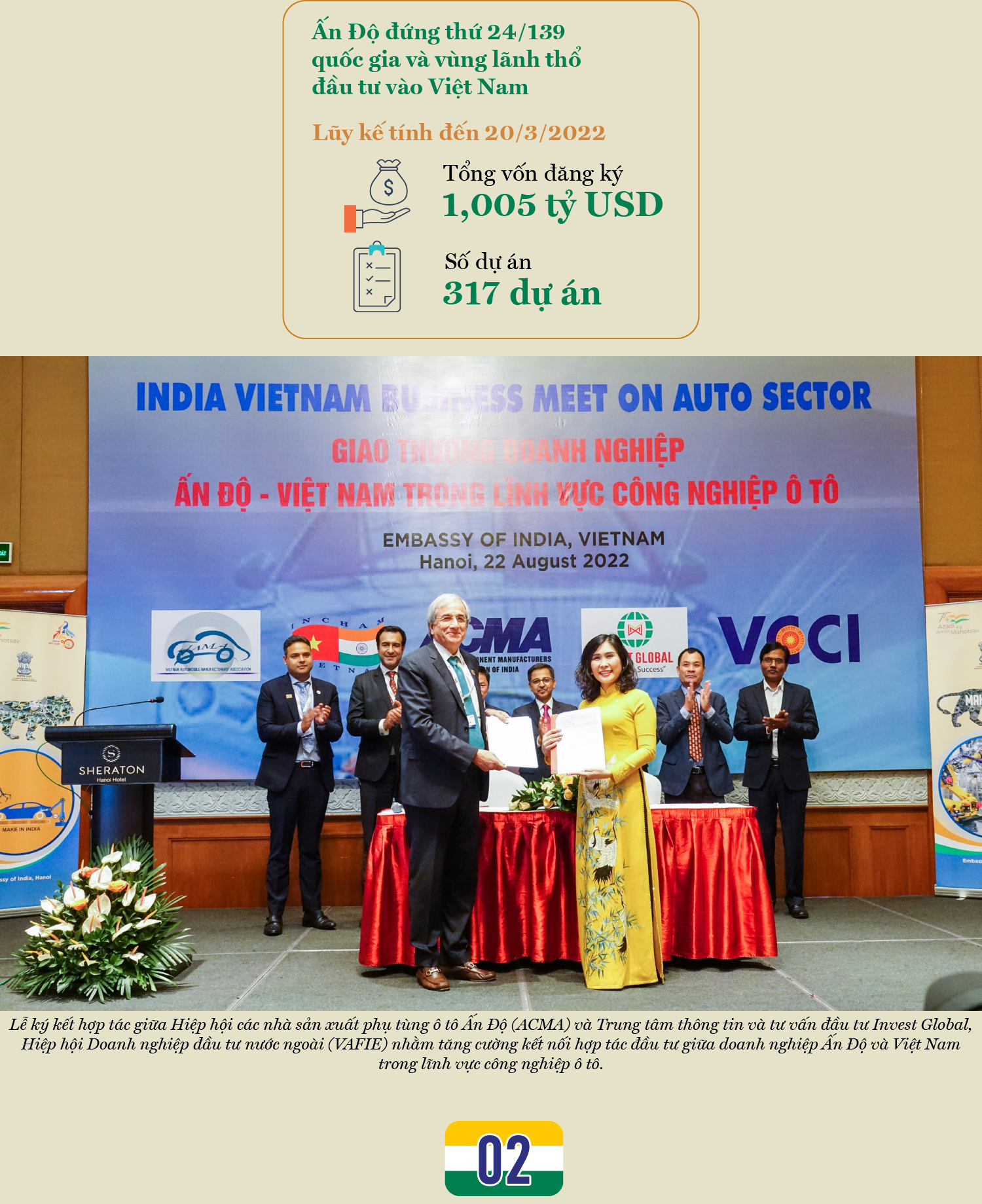 Từ khi thiết lập quan hệ ngoại giao vào năm 1972, quan hệ Việt Nam – Ấn Độ ngày càng phát triển bền chặt. Đặc biệt, kể từ khi hai quốc gia thiết lập quan hệ đối tác toàn diện từ năm 2016, hợp tác đầu tư giữa hai nước dần có sự thay đổi tích cực khi nhiều nhà đầu tư Ấn Độ có xu hướng chuyển dịch sang Việt Nam.