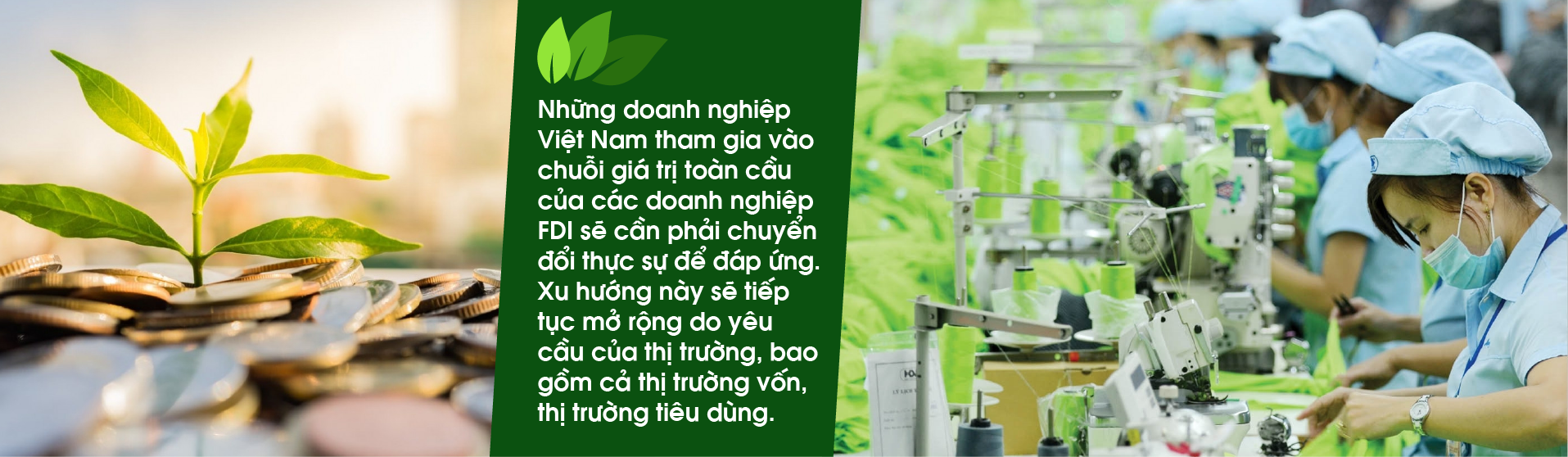 Bên cạnh đó, những doanh nghiệp Việt Nam tham gia vào chuỗi giá trị toàn cầu của các doanh nghiệp FDI sẽ cần phải chuyển đổi thực sự để đáp ứng. Xu hướng này sẽ tiếp tục mở rộng do yêu cầu của thị trường, bao gồm cả thị trường vốn, thị trường tiêu dùng.