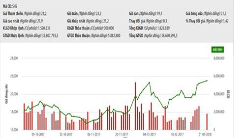 Đóng cửa phiên giao dịch ngày 2/1/2018, giá cổ phiếu SHS tăng 1,4% lên mức 21.500 đồng/cổ phiếu với khối lượng giao dịch khớp lệnh là hơn 1,5 triệu cổ phiếu, còn SHBS hiện đang giao dịch trên thị trường OTC.