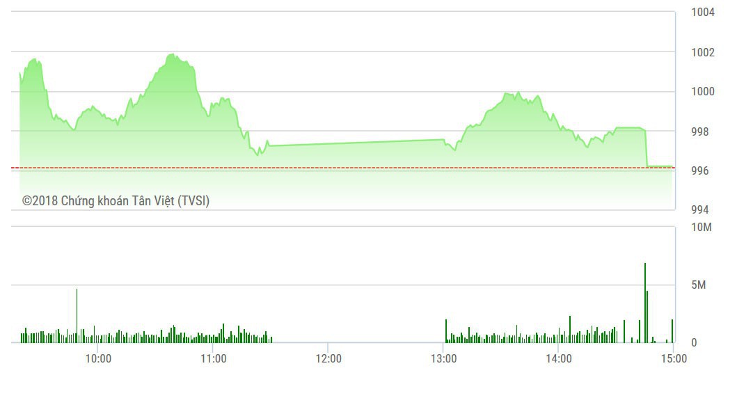VN30-Index đóng cửa cũng có một nhịp tụt về lại sát đáy thấp nhất trong ngày, giảm 0,3% so với tham chiếu. Rổ này có 15 mã giảm/11 mã tăng, có cải thiện một chút so với phiên sáng.