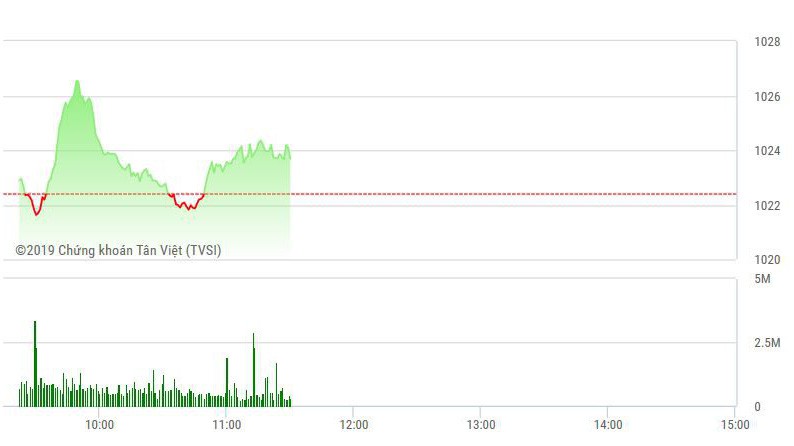 Cả thanh khoản lẫn đà tăng giá của cổ phiếu sáng nay đã bắt đầu suy yếu. Tuy nhiên vai trò nổi bật của VHM tiếp tục hỗ trợ VN-Index có thêm hơn 1 điểm nữa.