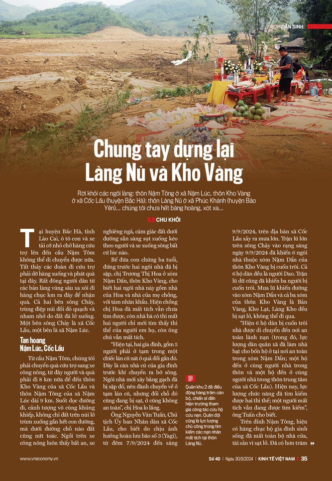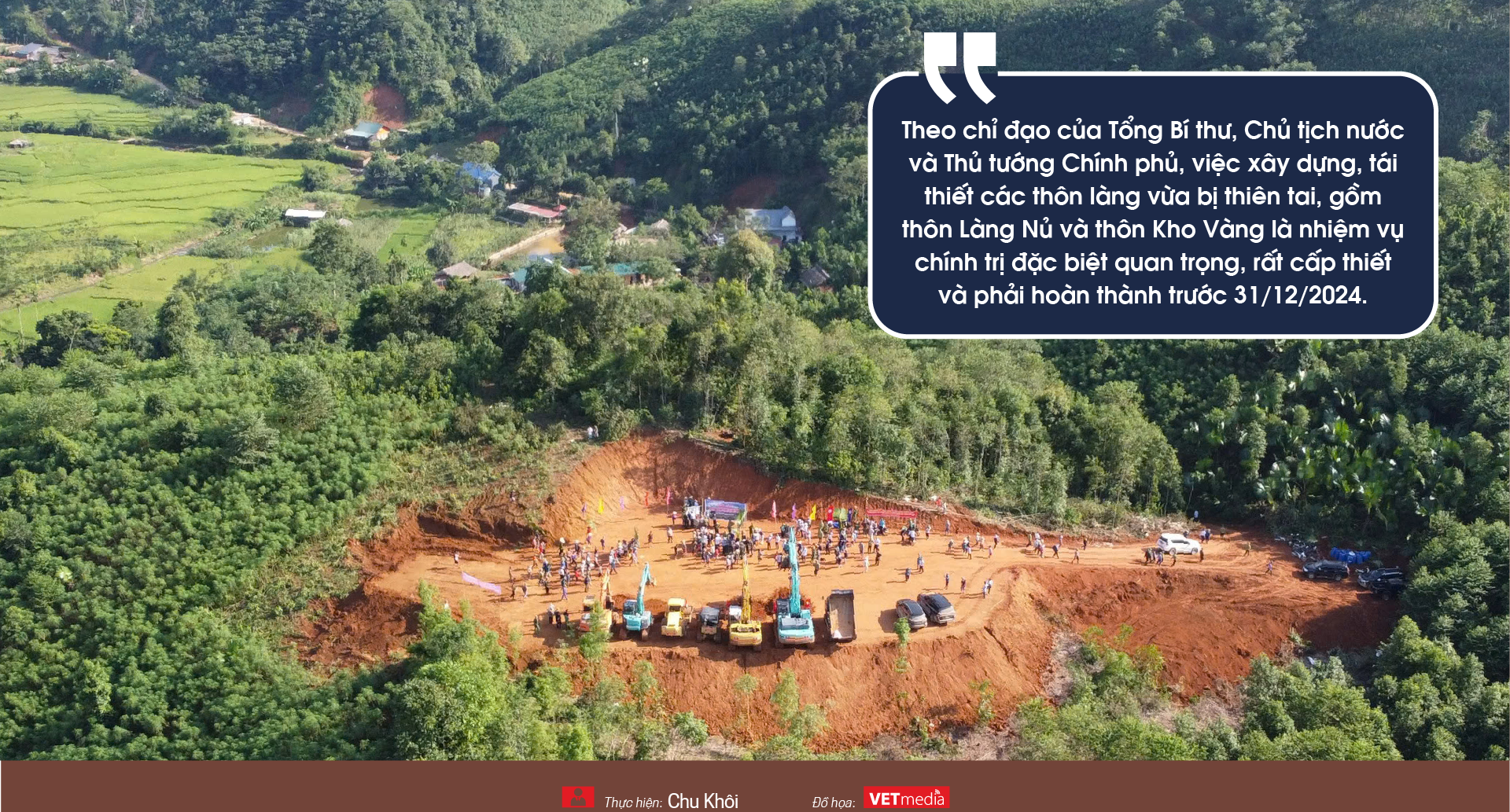 Lãnh đạo tỉnh Lào Cai cho biết theo chỉ đạo của Tổng Bí thư, Chủ tịch nước và Thủ tướng Chính phủ, việc xây dựng, tái thiết các thôn làng vừa bị thiên tai, gồm thôn Làng Nủ và thôn Kho Vàng là nhiệm vụ chính trị đặc biệt quan trọng, rất cấp thiết và phải hoàn thành trước 31/12/2024.
