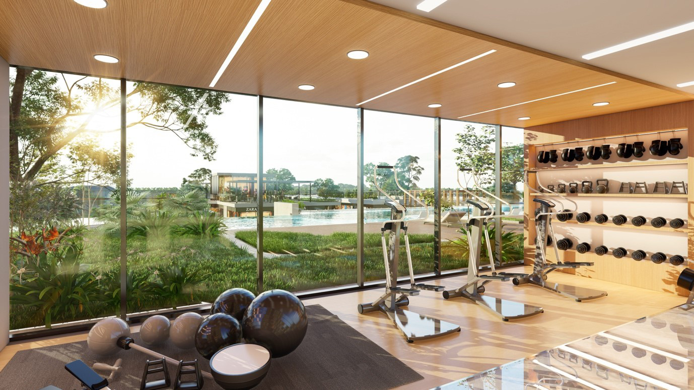Như mọi tiện ích tại Sol Forest, Gym center và Lounge đều được bao quanh bởi không gian cây xanh và mặt nước với quy mô lớn.