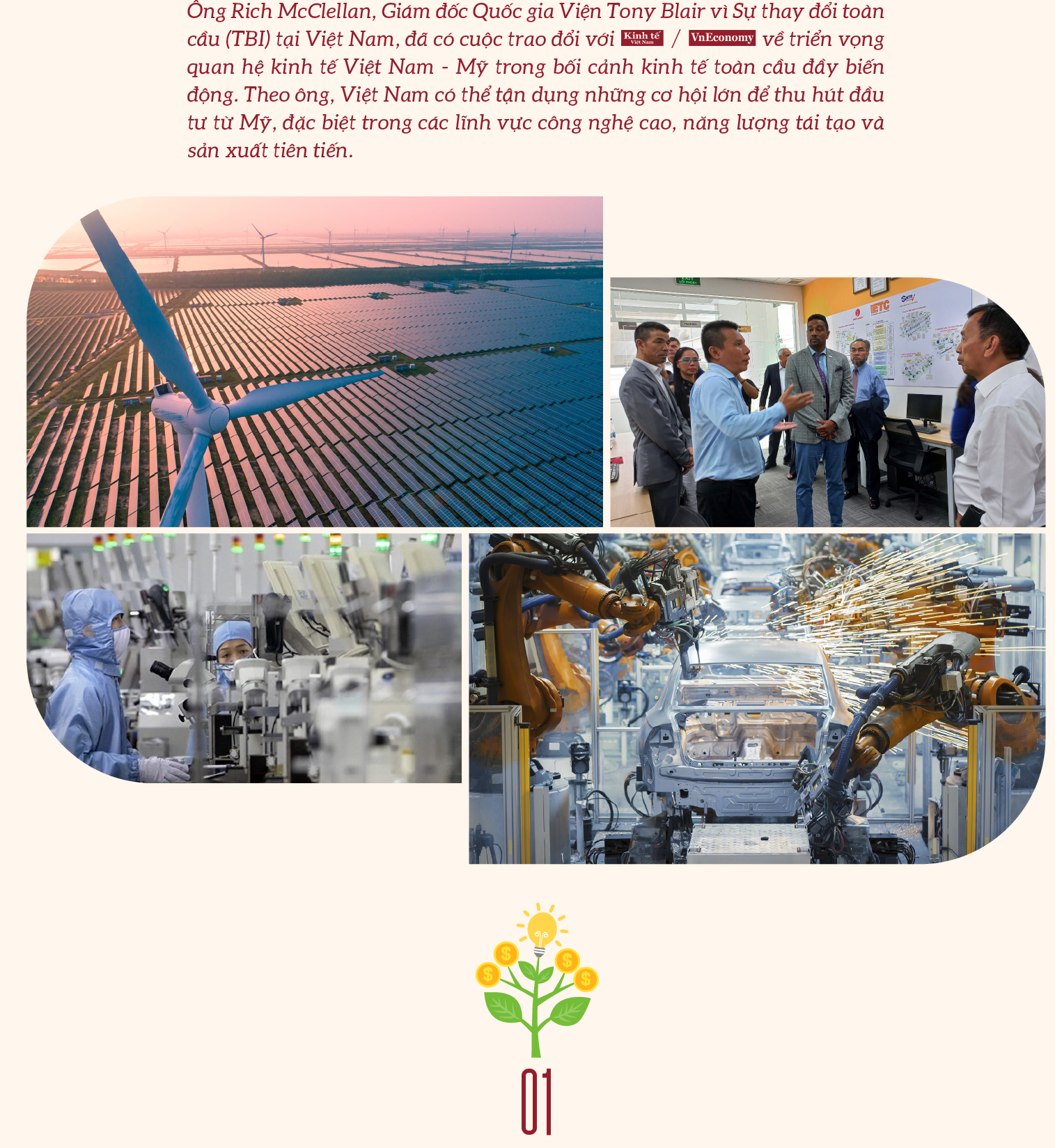 Việt Nam cần ưu tiên các chính sách hỗ trợ đổi mới sáng tạo, tăng trưởng xanh và áp dụng công nghệ. Việc thành lập các trung tâm đổi mới sáng tạo cùng với sự hỗ trợ của Mỹ có thể thúc đẩy hợp tác trong các ngành công nghiệp tiên tiến như AI, IoT và công nghệ sinh học.