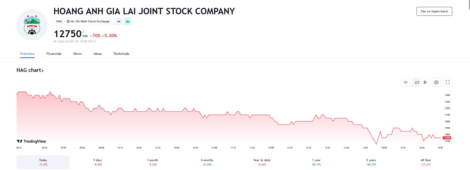 Được biết, từ ngày 25/9/2023 đến ngày 15/2/2024, giá cổ phiếu này đã tăng 79,1%, từ 7.510 đồng/cổ phiếu, lên 13.450 đồng/cổ phiếu. Ước tính bà Hoàng Anh đã thu về 26,9 tỷ đồng. Tuy nhiên, đóng cửa phiên giao dịch ngày 16/2, cổ phiếu HAG giảm 700 đồng, về 12.750 đồng/cổ phiếu.