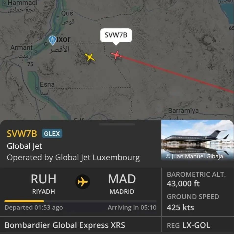 Riyadh vào khoảng 21h giờ địa phương. Máy bay sau đó bay qua Ai Cập và Địa