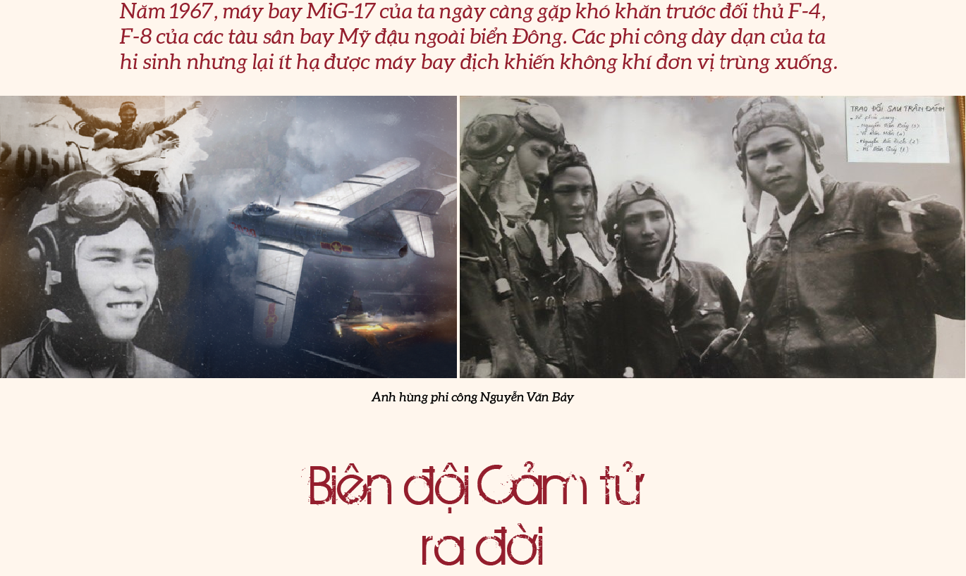 Phi công Lê Hải (sau này được phong Anh hùng lực lượng vũ trang nhân dân) bức xúc gặp Trung đoàn phó Anh hùng lực lượng vũ trang nhân dân Nguyễn Văn Bảy: “Thủ trưởng ơi, em hết cách rồi! Các bài anh dạy em dùng hết cả! Có khi đến lượt mình cũng “bị” với chúng nó nên em tính, đằng nào cũng hy sinh nên thà đeo bom đâm xuống tàu sân bay, mình chết thì nó cũng chết, như phi công thần phong của Nhật hồi thế chiến II!”. Trung đoàn phó nhẹ nhàng: “Mày tính vậy không được, tao biết giờ khó hơn hồi năm 1966 tụi tao, nhưng phải tính khác. Cụ Hồ cấm tao bay rồi (*) nên không thể dẫn tụi bay đi không chiến được, chứ đánh vậy thì còn mấy thằng đánh dài lâu?”.