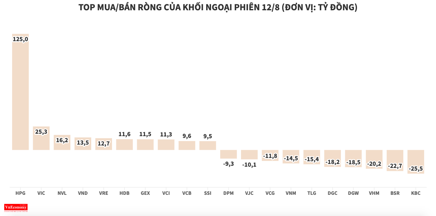 Hôm nay (12/8), thị trường đảo chiều xanh rực. Bên cạnh nhà đầu tư trong nước, khối ngoại cũng góp công với việc mua ròng hơn 108 tỷ đồng.