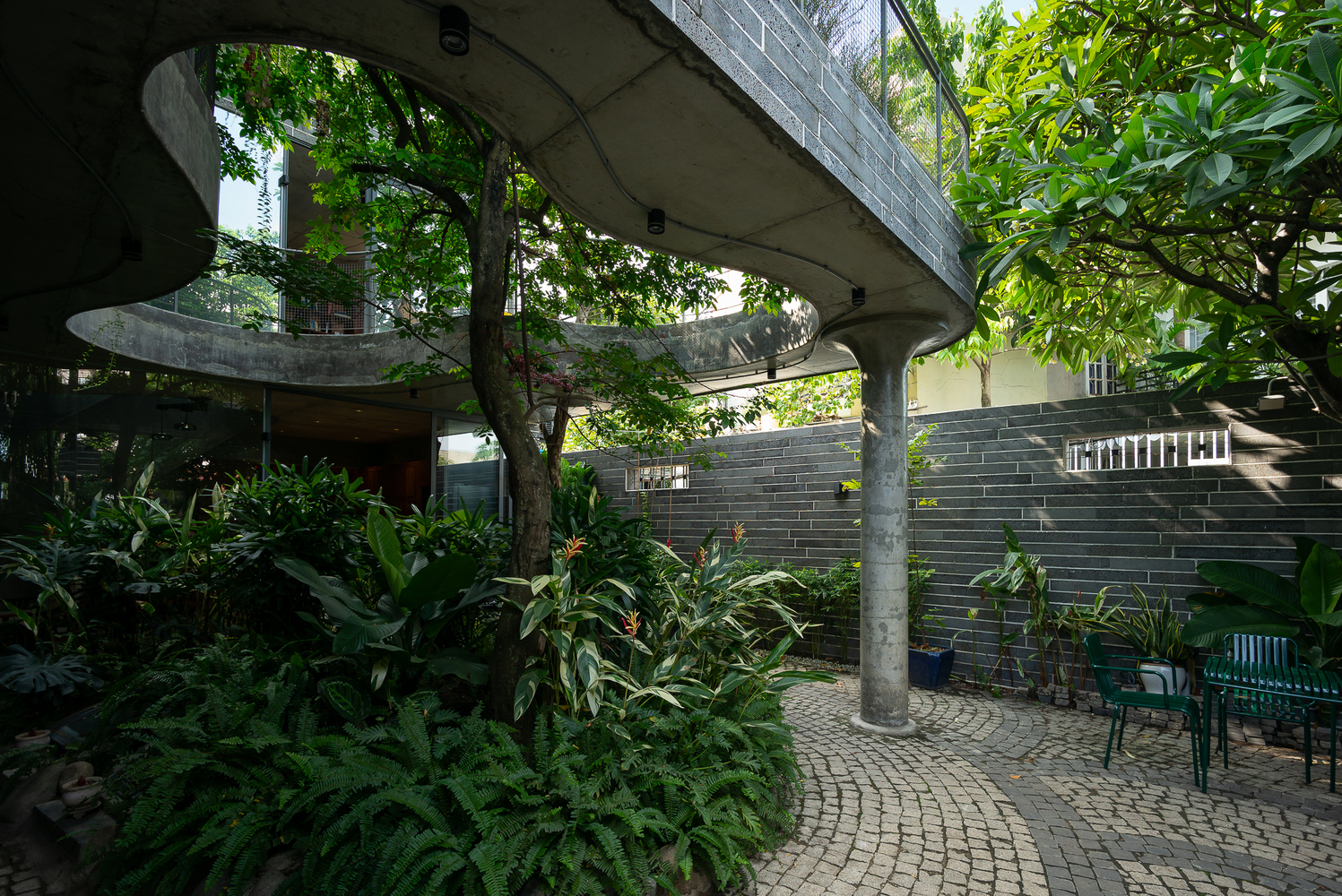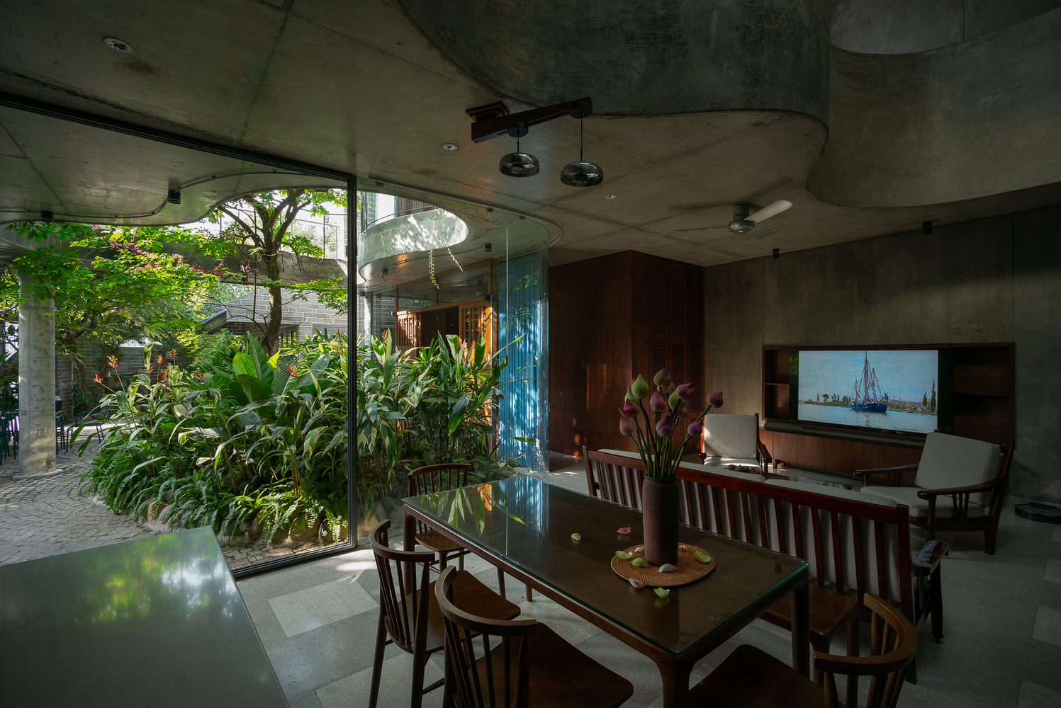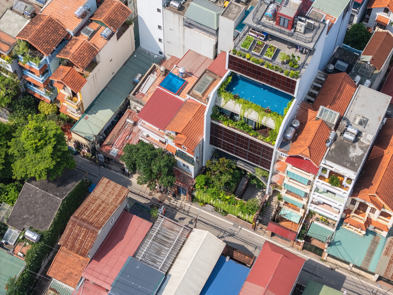Từ “đề bài” này, các kiến trúc sư từ TNT Architecture quyết định tái hiện những đặc điểm không gian truyền thống thông qua bố cục đa tầng gồm các hành lang, sân trong và những khoảng trống kết nối không gian. Những lớp chuyển tiếp này – từ ngoại thất vào nội thất, từ tầng trệt lên các tầng trên – tạo nên một sự liên tục liền mạch, nơi kiến trúc và cảnh quan hòa quyện hoàn hảo.