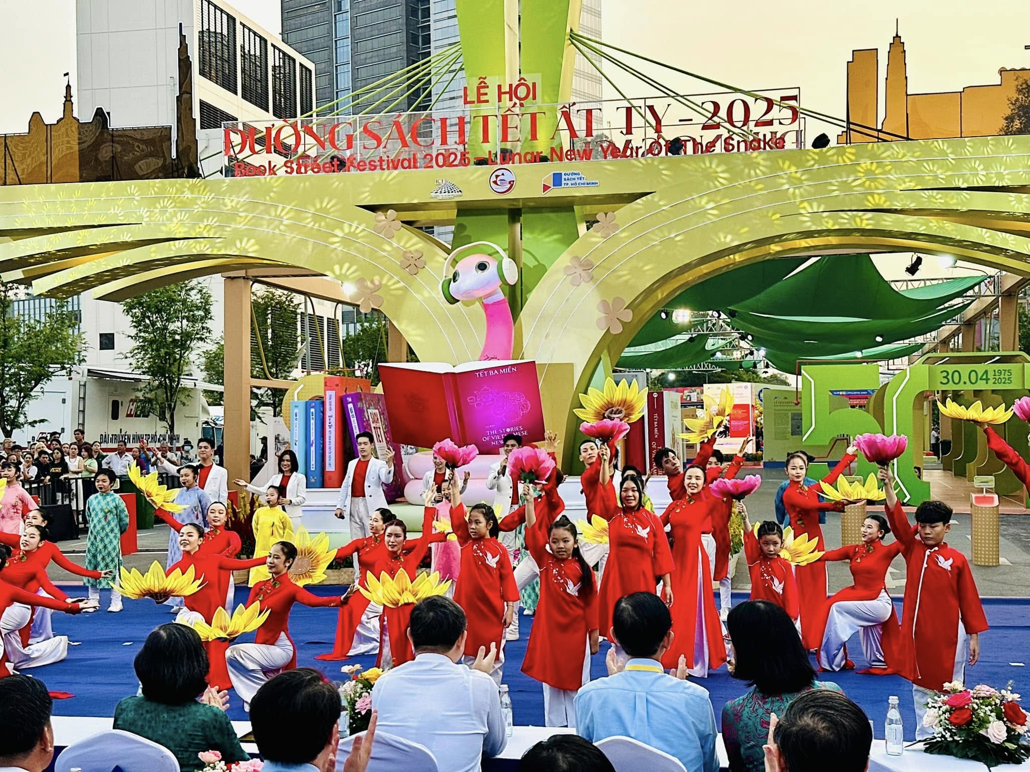Lễ hội Đường sách Tết Ất Tỵ 2025 với chủ đề "Non sông gấm hoa, vui xuân thái hòa" trên tuyến đường Lê Lợi, TP.HCM đã diễn ra thành công sau 7 ngày tổ chức, từ 28 tháng chạp đến hết mùng 5 Tết...