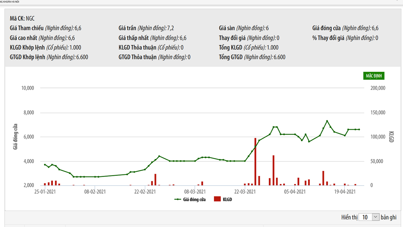 Theo đó, gần 2,3 triệu cổ phiếu NGC bị huỷ nhiêm yết trên HNX từ ngày 21/5 tới và ngày giao dịch cuối cùng là ngày 20/5. Nguyên nhân là do công ty đã có tổng số lỗ luỹ kế vượt quá vốn điều lệ thực góp tại BCTC có kiểm toán năm 2020, thuộc diện huỷ bỏ niêm yết bắt buộc theo quy định tại điểm e khoản 1, Điều 120 Nghị định 155/2020-NĐ-CP ngày 31/12/2020 quy định chi tiết thi hành một số điều của Luật Chứng khoán.