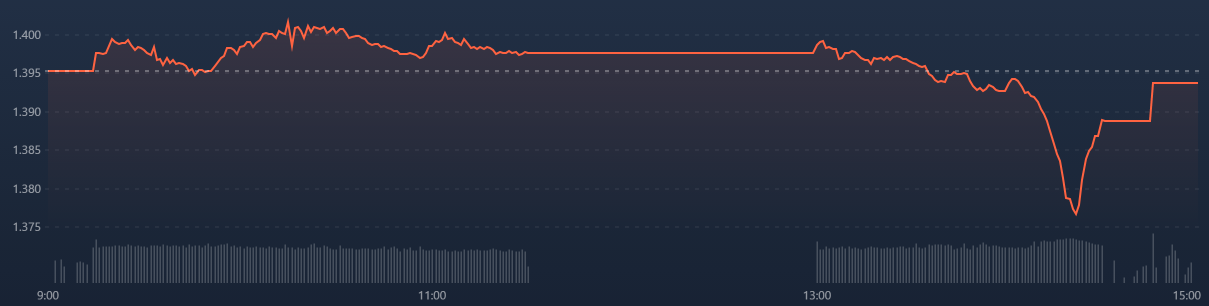 Để so sánh, trong 6 phiên đi ngang trước đó, biên độ giảm sâu nhất của cả VN-Index lẫn VN30-Index cũng không quá 0,5% so với tham chiếu. Vì vậy mức giảm chiều nay là khá sốc. Ngoài ra, khi các chỉ số giảm, độ rộng của nhóm Vn30 không còn một cổ phiếu nào tham chiếu hay tăng, tất cả cùng giảm. Với VN-Index, khi chỉ số chạm đáy 1.376 điểm, độ rộng chỉ còn 111 mã tăng/332 mã giảm.