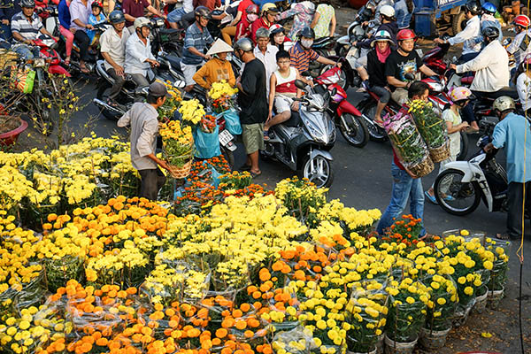 Chúng tôi thích nhất là theo mẹ vào vườn kiểng chọn những loại có hoa nở đem về trưng ngay mà không cần chăm sóc gì nhiều. Năm nào cũng vậy, dọn dẹp nhà cửa xong là mấy mẹ con đi chợ hoa. Dạo ấy, chợ hoa nơi tôi ở chỉ là những vườn hoa kiểng hoặc những bãi đất trống được người kinh doanh tập trung cây cảnh về bán trong dịp Tết. Nào là hoa mai, hoa giấy, cúc đủ loại, vạn thọ, đỗ quyên, quất kiểng cùng nhiều loại bonsai tuyệt đẹp… Nhiều người dân từ các cù lao bên kia sông bơi xuồng về chợ chơi, tiện thể bẻ vài cành mai bán kiếm ít tiền xài Tết hay quần áo, quà Tết cho sắp nhỏ ở nhà. Tiếng chào mời, trả giá rộn một góc đường. Chỉ đơn giản vậy thôi nhưng cũng đã là cả "thiên đàng" với chúng tôi thưở ấy. Chở những chậu hoa loa kèn đủ màu sắc hay những giỏ cúc mâm xôi vàng rực sau xe mà chúng tôi cứ ngỡ chở cả mùa xuân về nhà. Vui gì đâu!