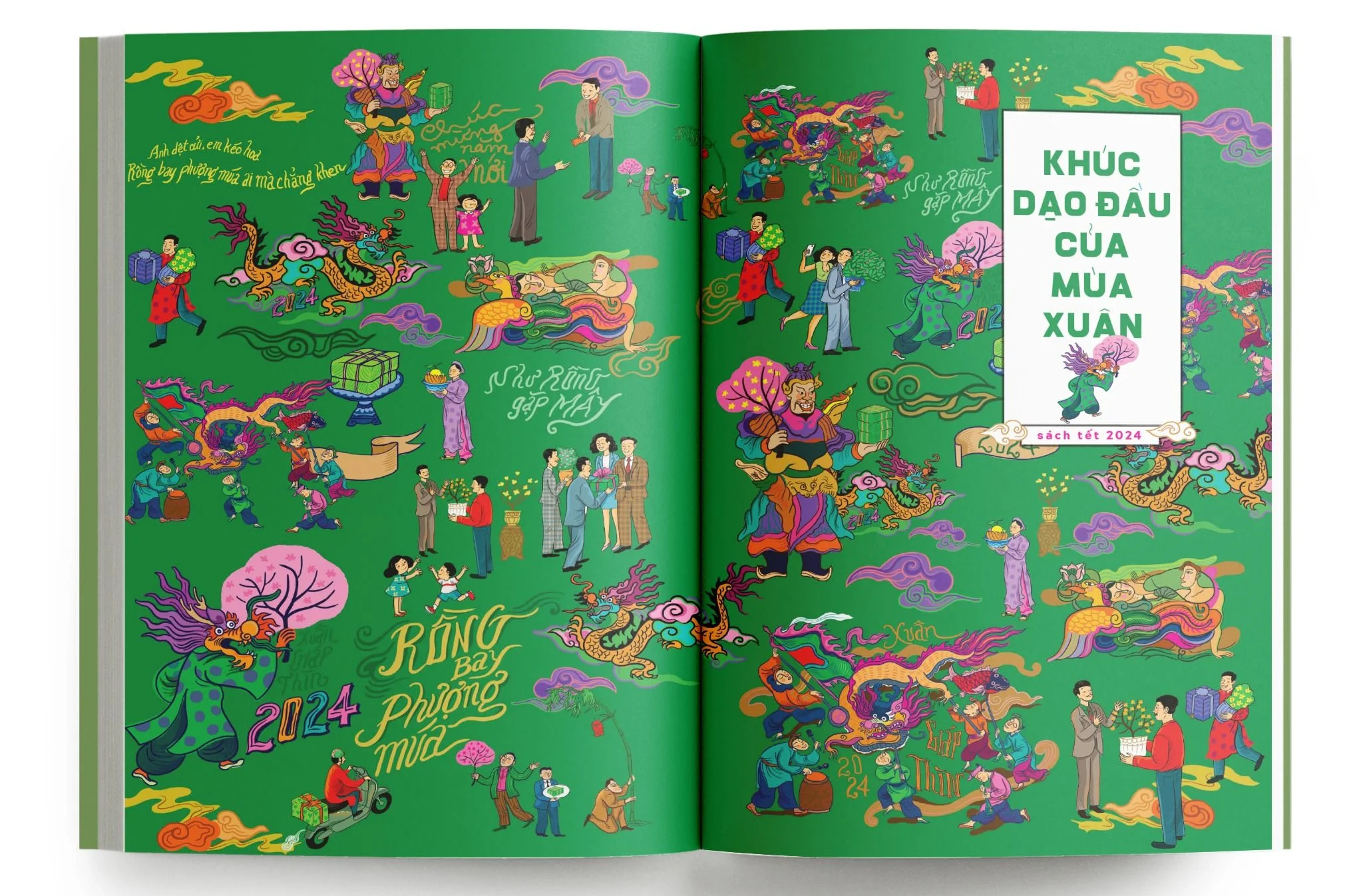 Ở Sách Tết Giáp Thìn 2024, từ phần “đọc” đến phần “nhìn”, độc giả đều có thể dễ dàng cảm nhận hương sắc mùa xuân. Những con chữ kể câu chuyện tết xưa tết nay, còn tranh minh họa và thiết kế của sách vừa đậm phong vị dân gian, vừa mang hơi thở hiện đại đầy sống động với những cải biến trong cách thể hiện. Sách có sự góp mặt của 60 tác giả, từ những cái tên đã trở nên quen thuộc như Nguyễn Thị Thu Huệ, Ma Văn Kháng, Hồ Anh Thái, Phan Thị Vàng Anh... đến những “cây bút” trẻ hơn như Huỳnh Trọng Khang, Hiền Trang...