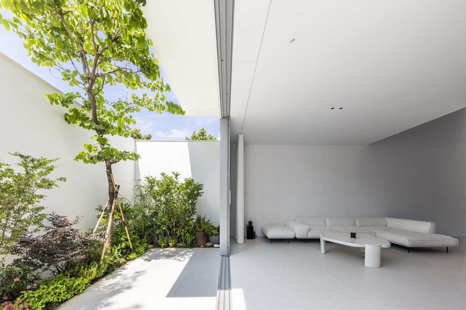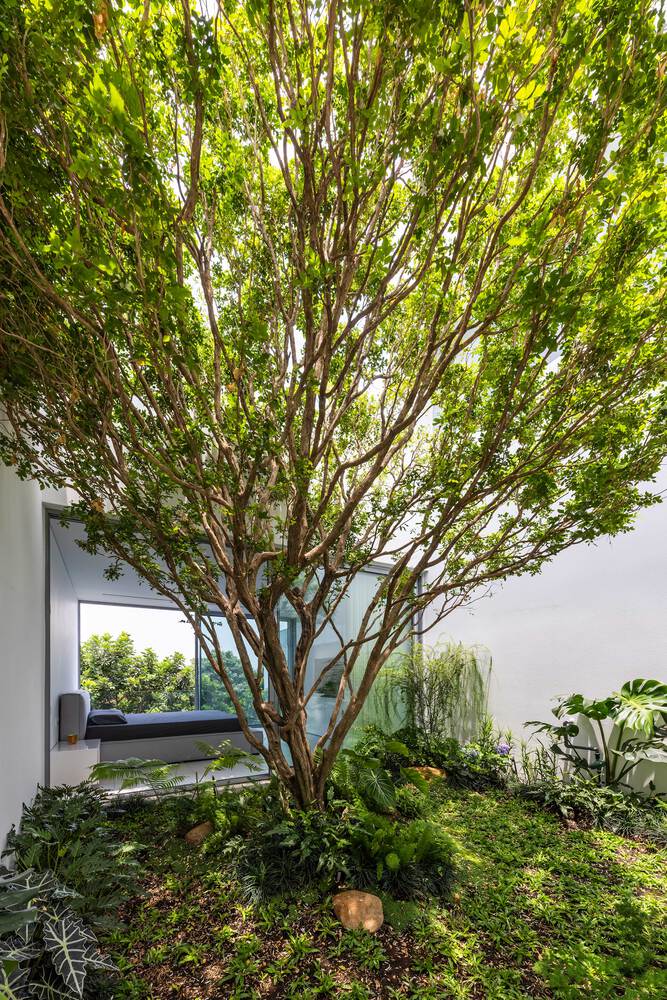 gian chức năng xoay quanh một sân trong ở giữa để kết nối các không gian sống —