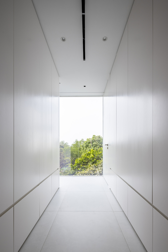 trắng tinh khiết, hầu như không có đồ vật trang trí hay tranh ảnh trên các vách
