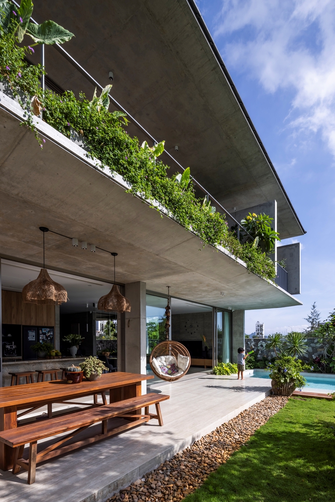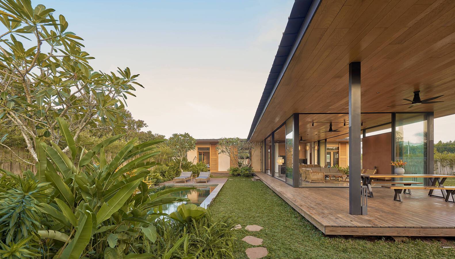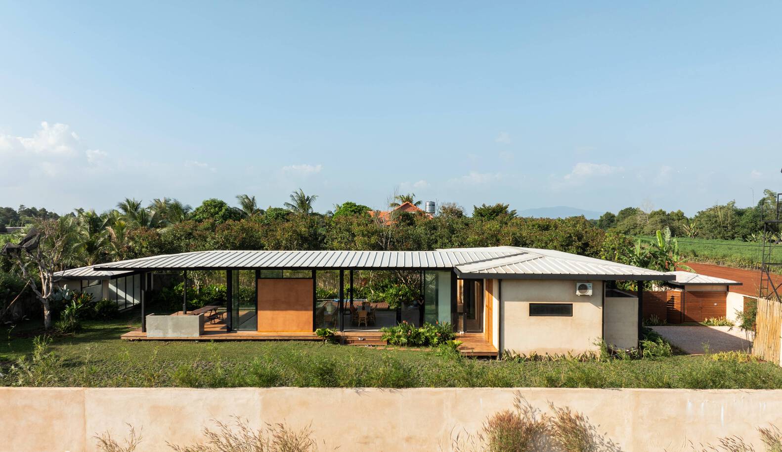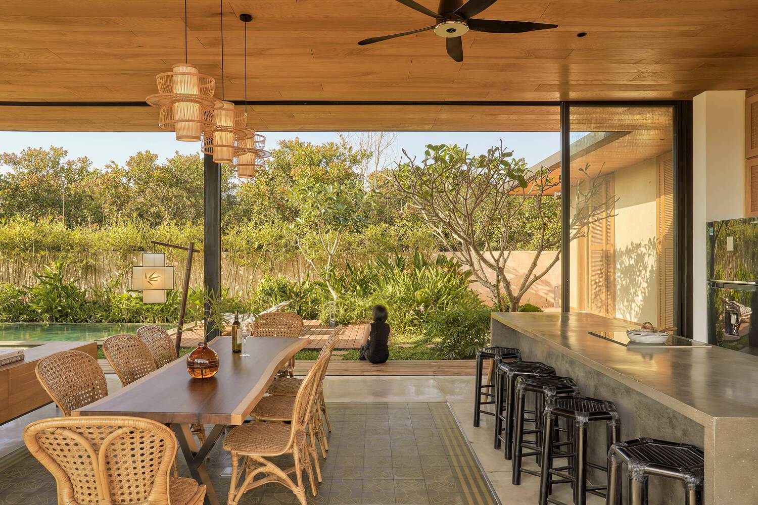 T3 Architects và Kanopéa Architecture Studio đã thiết kế căn biệt thự nhiệt đới này tại Hồ Tràm, theo nguyên tắc kiến trúc sinh khí hậu. Gia chủ muốn có một nơi ở thứ hai để dành thời gian bên gia đình giữa vùng nông thôn Việt Nam xinh đẹp, tránh xa sự ồn ào náo nhiệt của TP.HCM. Vì vậy, mục tiêu của các kiến trúc sư là tạo ra một căn biệt thự một tầng được bao quanh bởi cây xanh, vừa tiện nghi, vừa mang lại cảm giác thoải mái khi sinh sống, đồng thời có sự kết nối "mở" hoàn toàn với khu vườn.