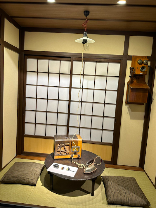 Căn phòng mô phỏng việc sử dụng điện của gia đình Nhật Bản đầu năm 20 của thế kỷ trước khi chỉ có một nguồn điện duy nhất vào nhà là từ đường dây bóng đèn được gắn trên trần nhà; và hành trình phát triển các sản phẩm nối dây của Panasonic theo thời gian.