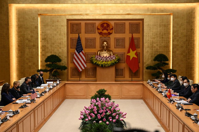 Trước cuộc gặp với Thủ tướng Phạm Minh Chính, bà Harris đã gặp Phó chủ tịch nước Võ Thị Ánh Xuân và Chủ tịch nước Nguyễn Xuân Phúc.