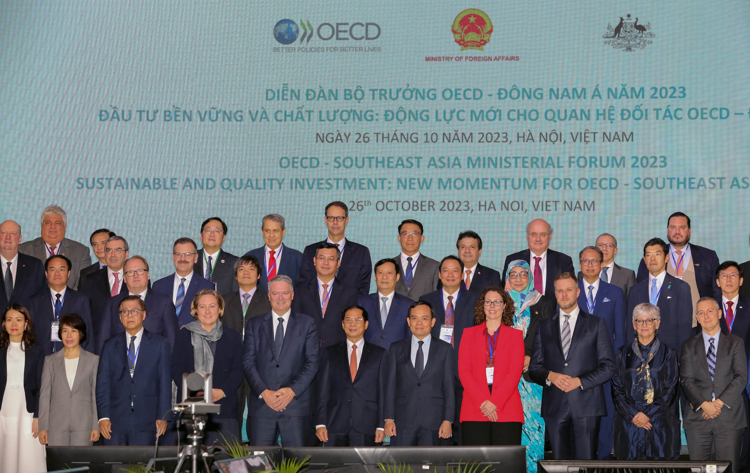 Chiều ngày 26/10/2023, trên cương vị Đồng Chủ tịch Chương trình Đông Nam Á (SEARP) của Tổ chức hợp tác và phát triển kinh tế (OECD), Việt Nam đã phối hợp với Australia và OECD tổ chức Diễn đàn Bộ trưởng OECD – Đông Nam Á năm 2023 với chủ đề “Đầu tư bền vững và chất lượng: Động lực mới cho quan hệ đối tác OECD – Đông Nam Á” tại Hà Nội.