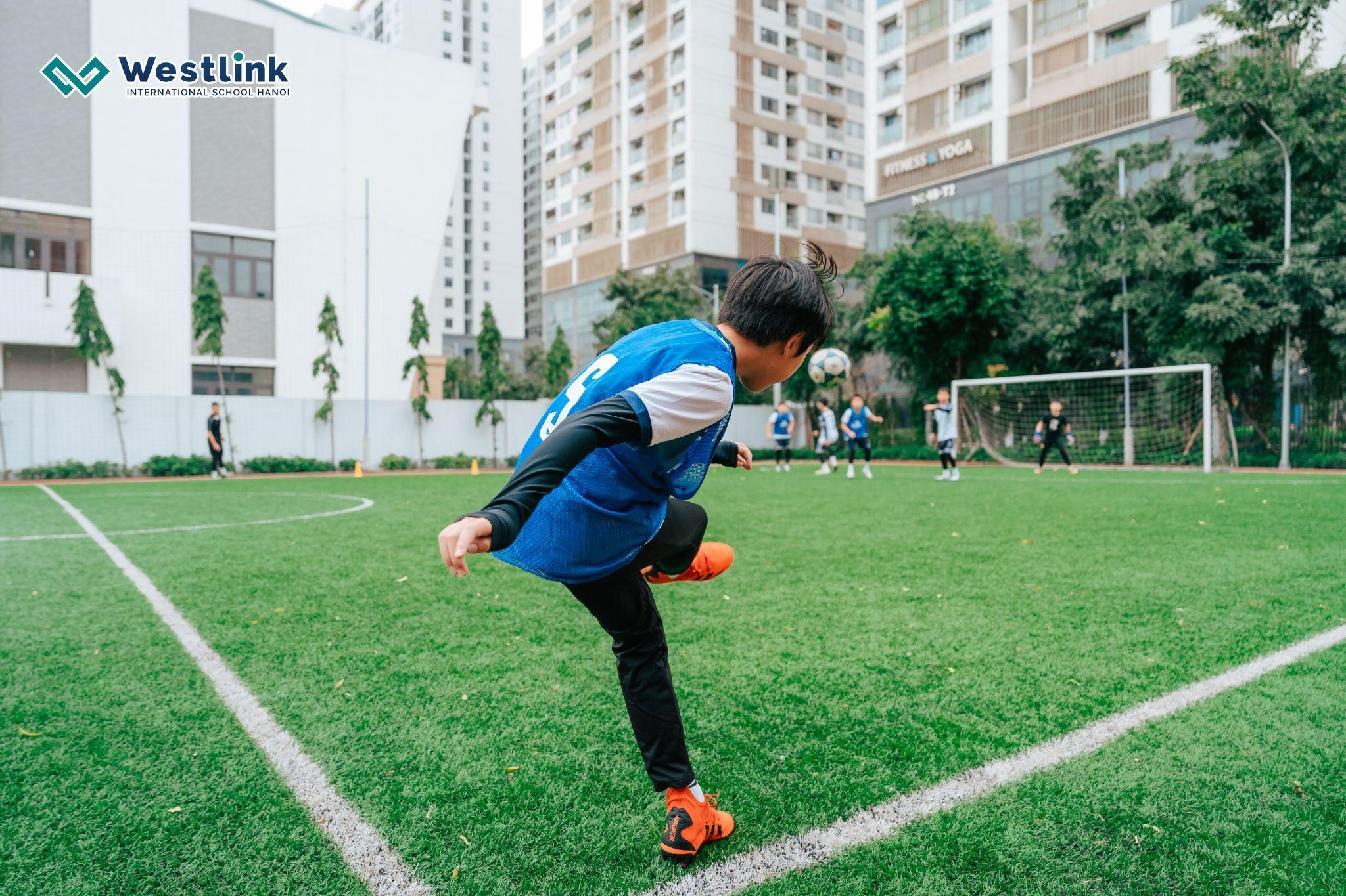 Physical fitness and sportsmanship are integral components of a well-rounded education at Westlink International School and a core value of an IB education, reflected in expansive sporting areas designed to promote active lifestyles, teamwork, and sportsmanship among students. The meticulously-maintained football pitch provides an ideal setting for honing soccer skills and competing in friendly matches and competitions. The multi-purpose hall and multi-functional courts offer a versatile space for indoor and outdoor sports like basketball, badminton, and gymnastics, etc., encouraging students to explore their athletic interests and develop essential motor skills in a supportive environment. The campus also features an indoor swimming pool, providing learners with a refreshing outlet for aquatic activities and promoting overall fitness and well-being.