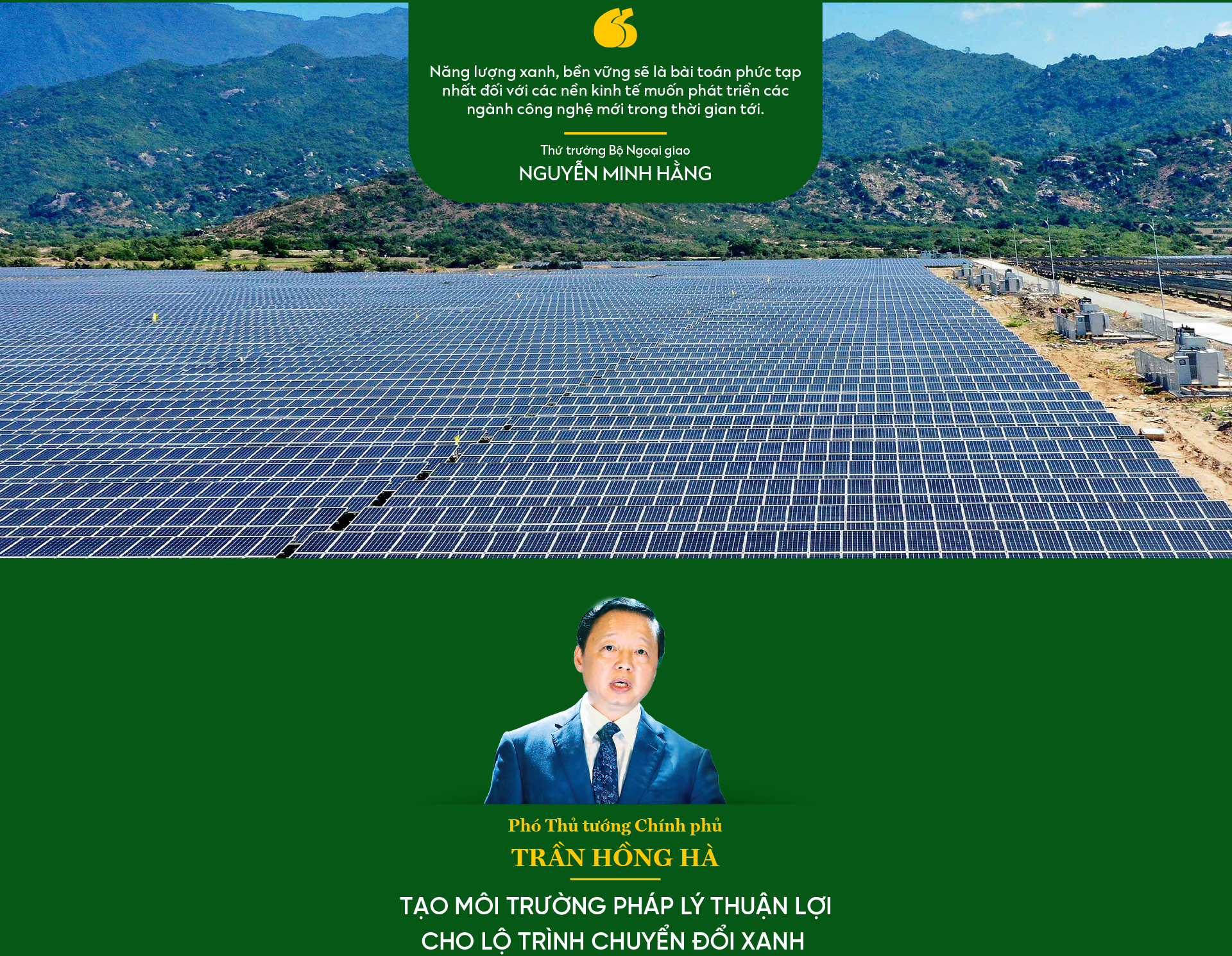 Thời gian qua, Việt Nam đã có những nghị quyết, chiến lược, kế hoạch quan trọng, cơ chế, pháp luật cụ thể về bảo vệ môi trường, chuyển đổi năng lượng nhằm kiến tạo môi trường pháp lý, chính sách phát triển năng lượng tái tạo. Đồng thời, kết nối với các sáng kiến quốc tế để thực hiện giảm phát thải ròng khí nhà kính bằng 0 cũng như thu hút sự tham gia của doanh nghiệp và người dân vào kinh tế tuần hoàn.