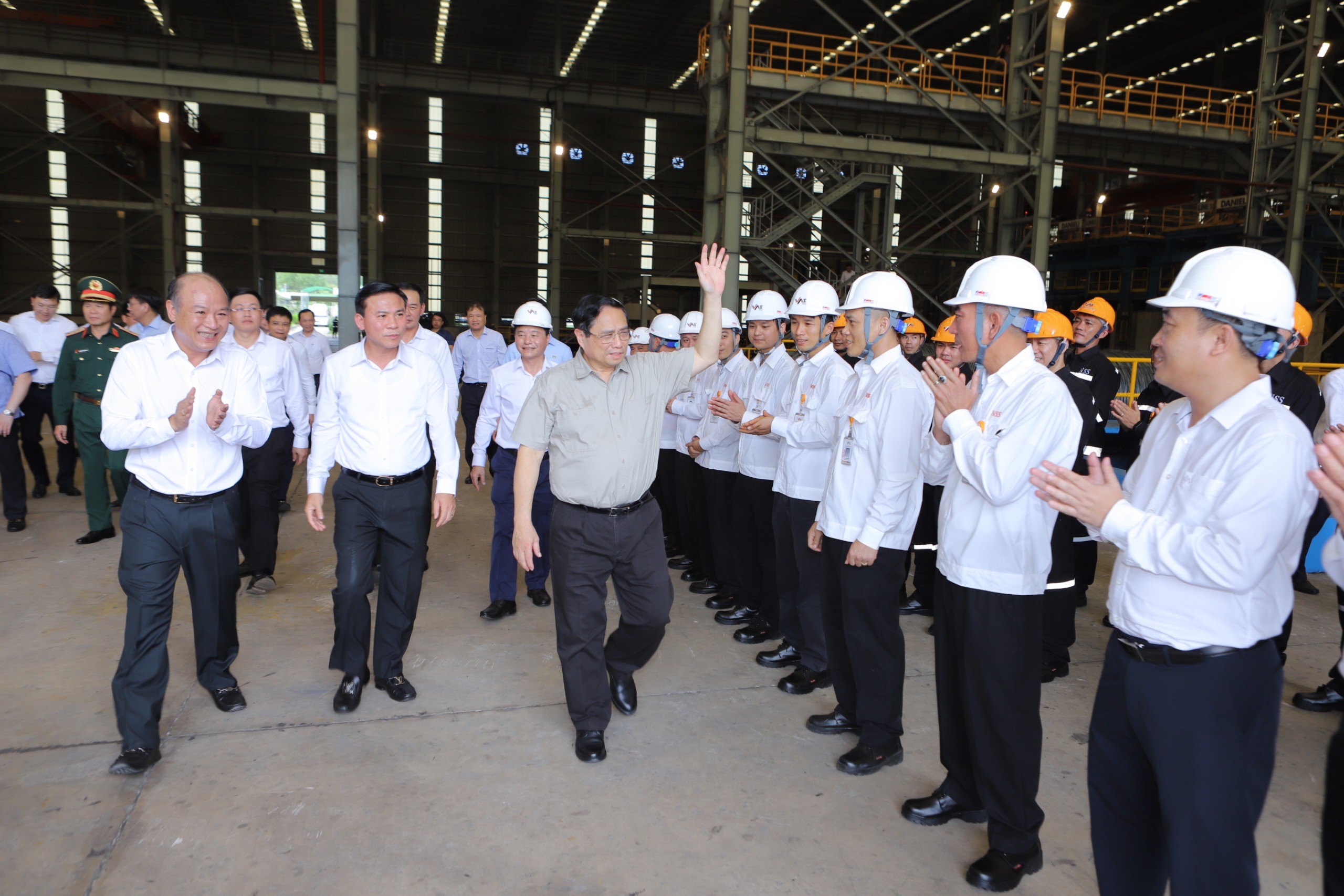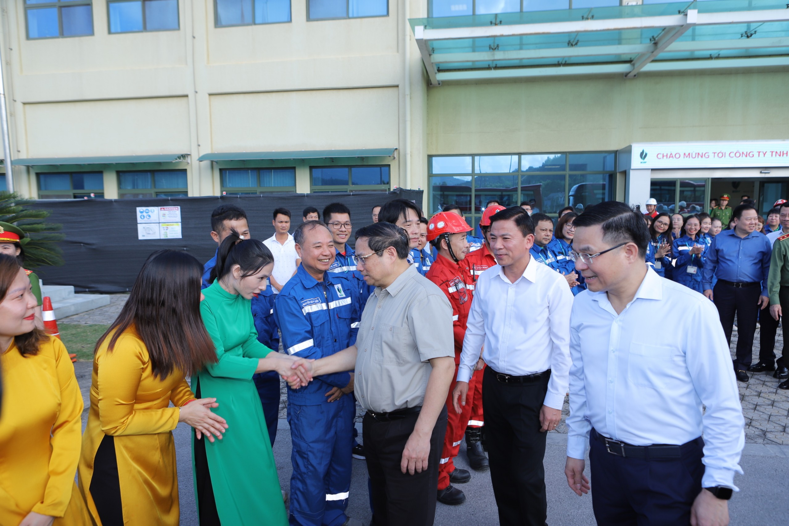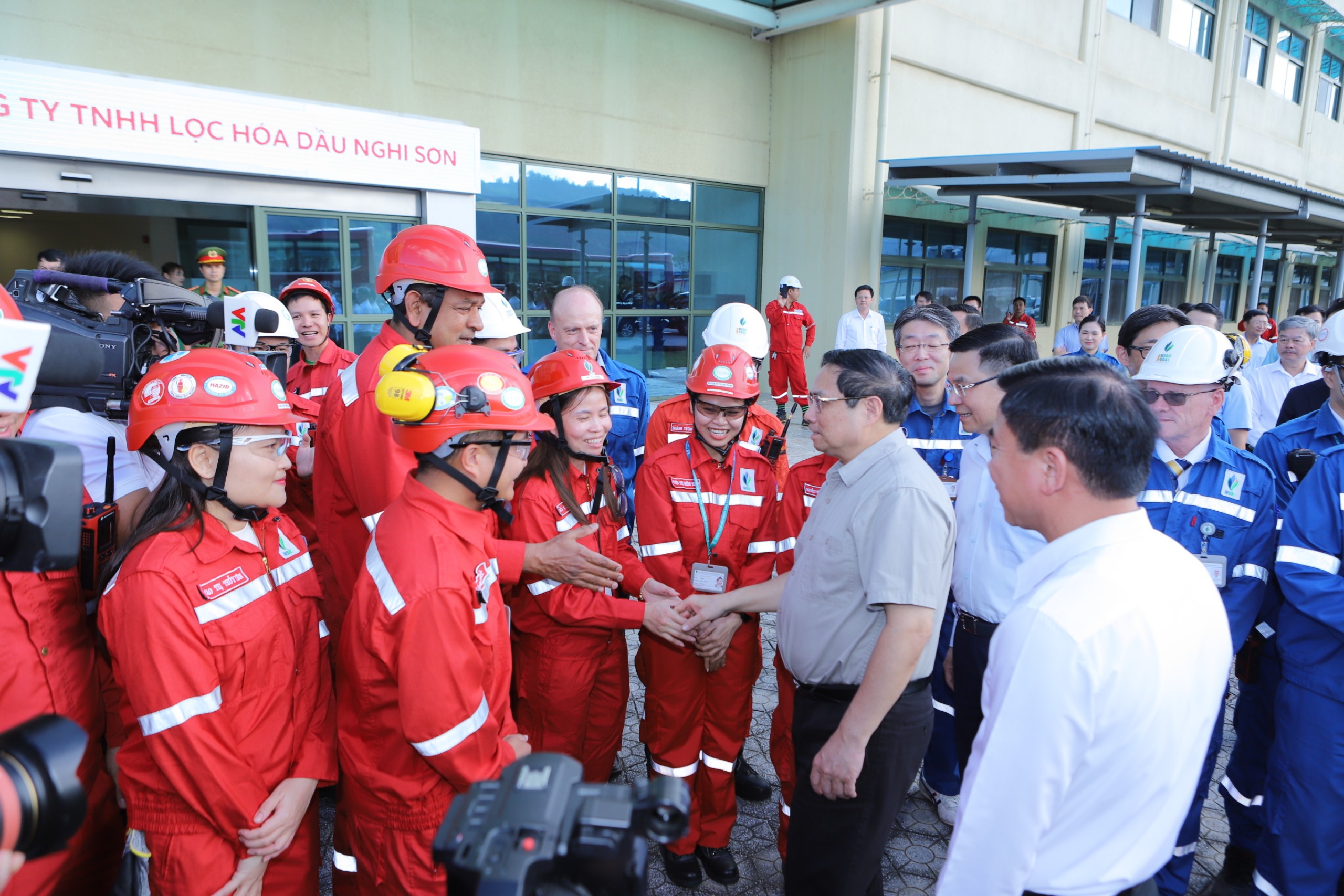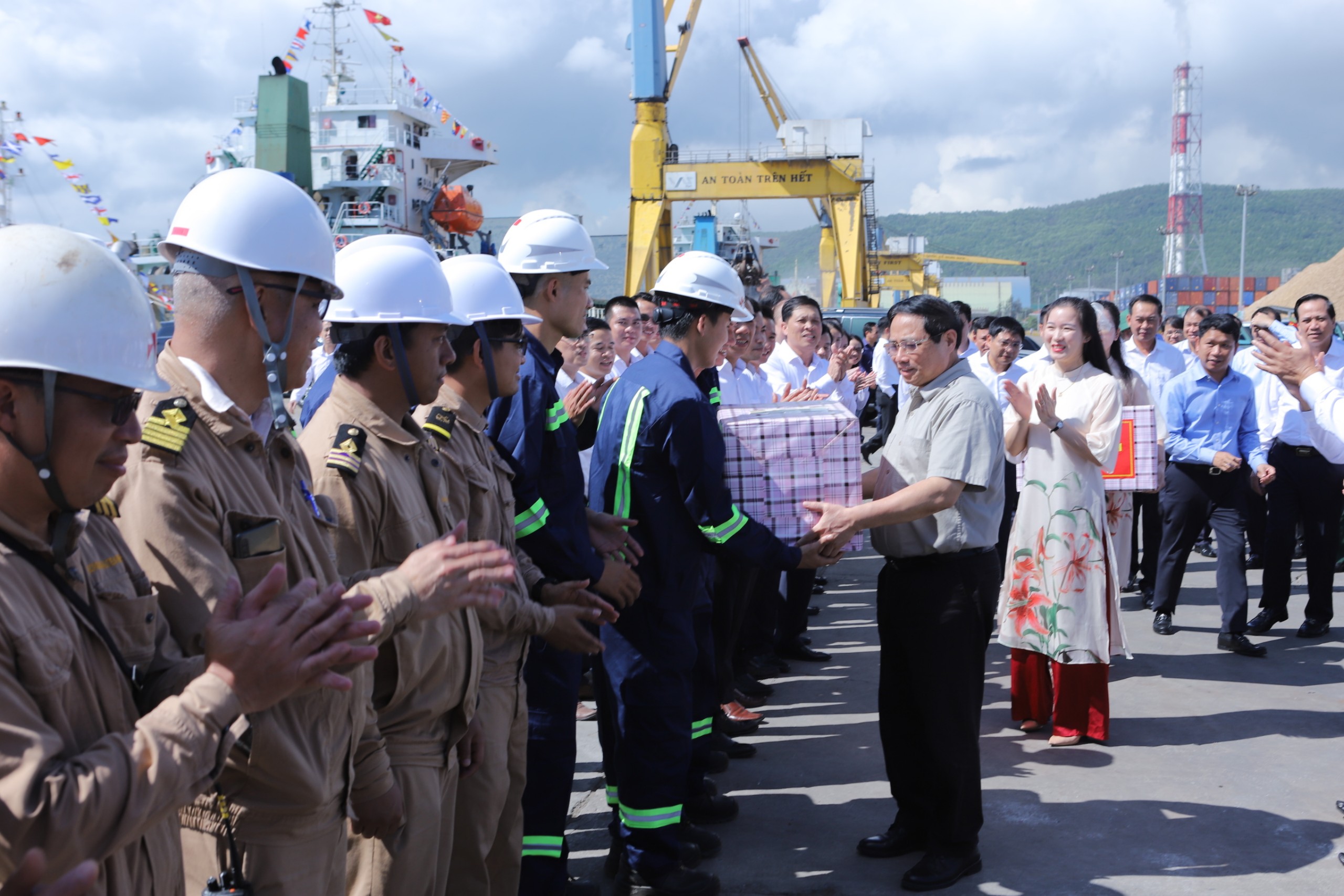 Tại đây, Thủ tướng Chính phủ Phạm Minh Chính đã đến thăm, tặng quà, động viên cán bộ, chuyên gia, kỹ sư và công nhân, người lao động đang làm việc tại Nhà máy Lọc hóa dầu Nghi Sơn - công trình trọng điểm quốc gia.