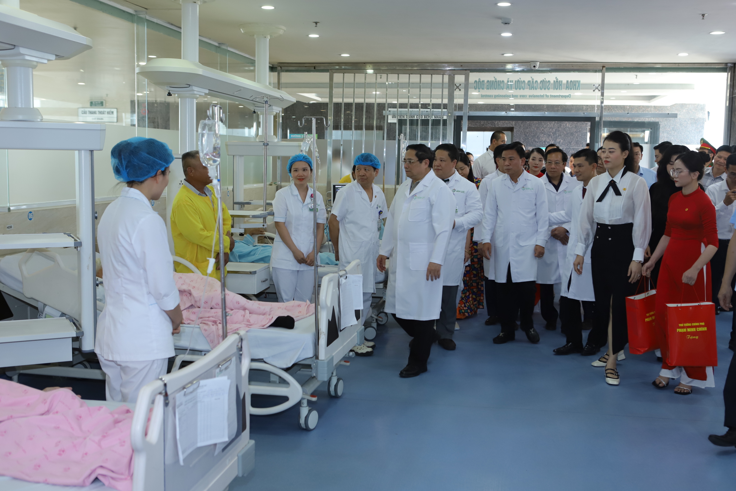 Cuối buổi sáng, Thủ tướng Chính phủ Phạm Minh Chính cùng đoàn công tác đã đến thăm Bệnh viện đa khoa Quốc tế Hợp Lực - Nghi Sơn. Thủ tướng đã đi kiểm tra cơ sở vật chất, trang thiết bị của Bệnh viện và đến thăm, tặng quà, động viên các bệnh nhân đang điều trị tại đây.
