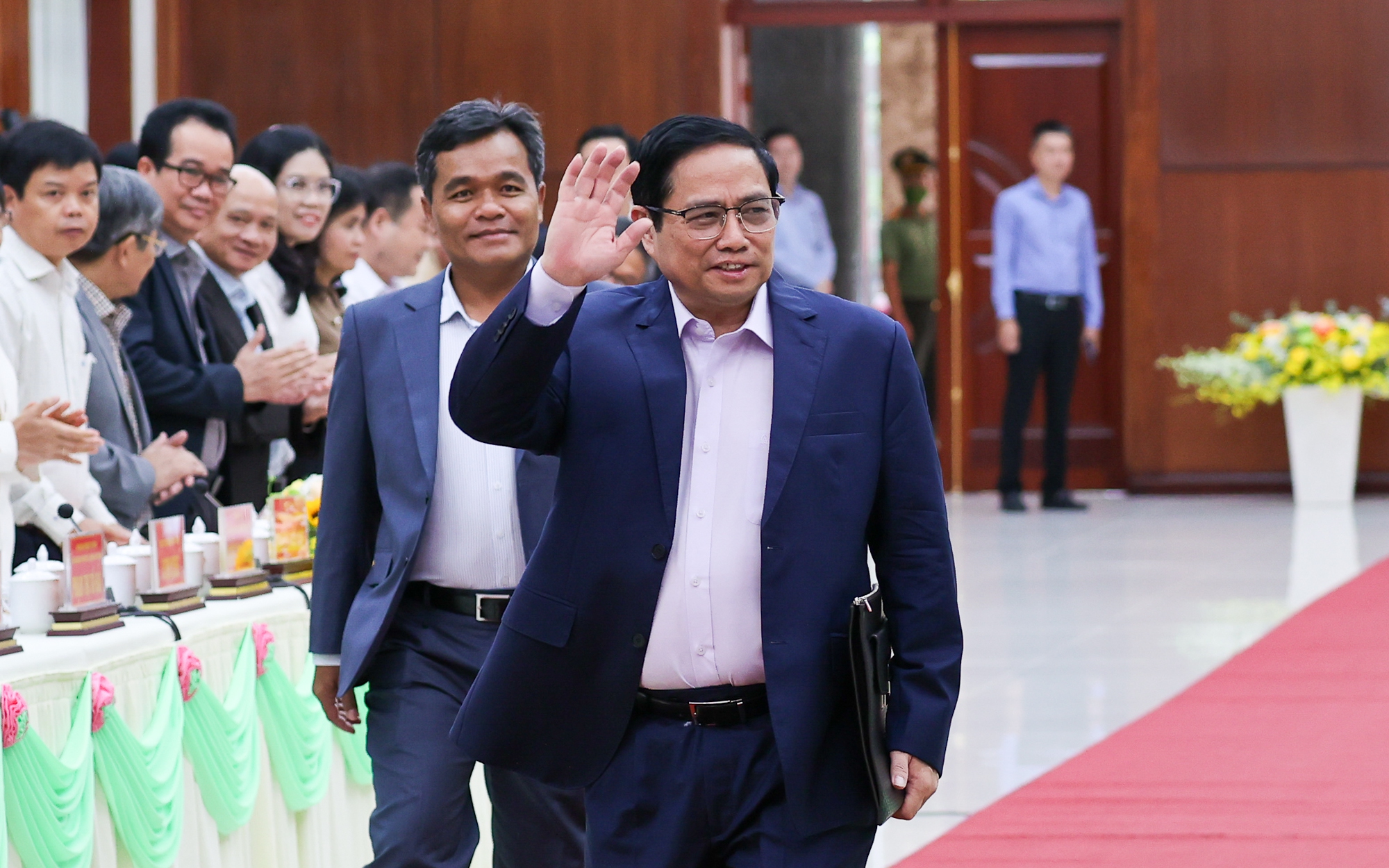 "Tỉnh cần tập trung giải quyết cơ chế, chính sách để phát triển, phát triển hạ tầng chiến lược và quan trọng nhất tự tin vươn lên từ bàn tay, khối óc, khung trời, mảnh đất của mình, tự lực tự cường hơn nữa, phát huy nội lực mạnh hơn nữa", Thủ tướng nhấn mạnh.