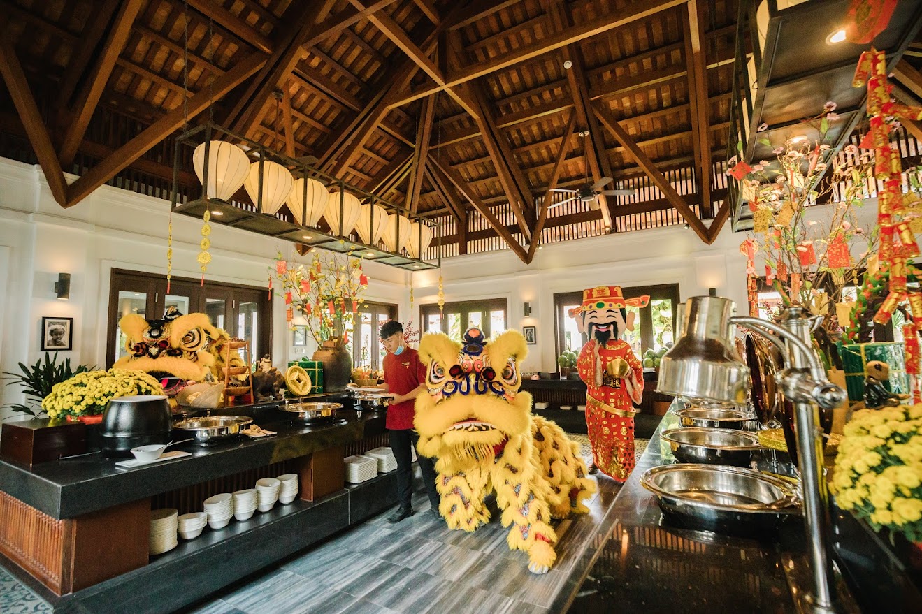 Tại Azerai La Residence Huế, du khách có thể cảm nhận trọn vẹn không khí Tết Cố đô qua các hoạt động như tham quan chợ hoa, gói bánh chưng cùng nghệ nhân, thưởng trà mứt ngày Xuân, xem múa lân và nhận lì xì đầu năm. Trải nghiệm ẩm thực Tết được chăm chút với thực đơn truyền thống biến tấu tinh tế, trà chiều và cocktail lấy cảm hứng từ hương vị ngày Xuân trong không gian Art Deco cổ điển.