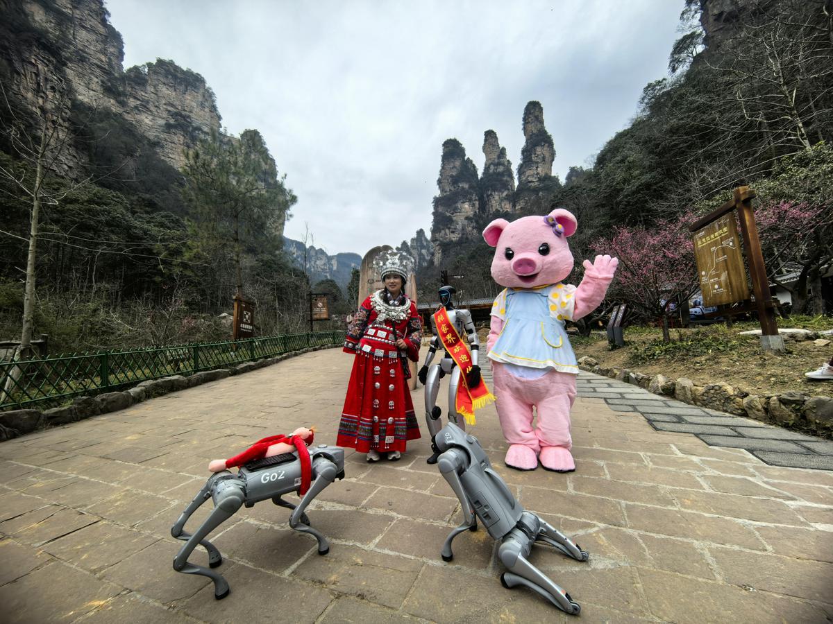 Trong khi đó, tại núi Yandang (Ôn Châu), từ trước dịp Tết Thanh minh, khu danh thắng này đã đưa vào vận hành một robot hình người và năm chú chó robot. Ở một số điểm du lịch nổi tiếng như thác Dalongqiu hay đỉnh Lingfeng, chúng xuất hiện để chào đón khách, chụp ảnh và biểu diễn tương tác. Theo ông Ye Jintao, Phó Giám đốc Ban quản lý du lịch núi Yandang, trong tương lai họ sẽ phát triển hình tượng robot gắn với văn hóa truyền hình như các bộ phim, kết hợp livestream, phim ngắn và trải nghiệm thực tế.