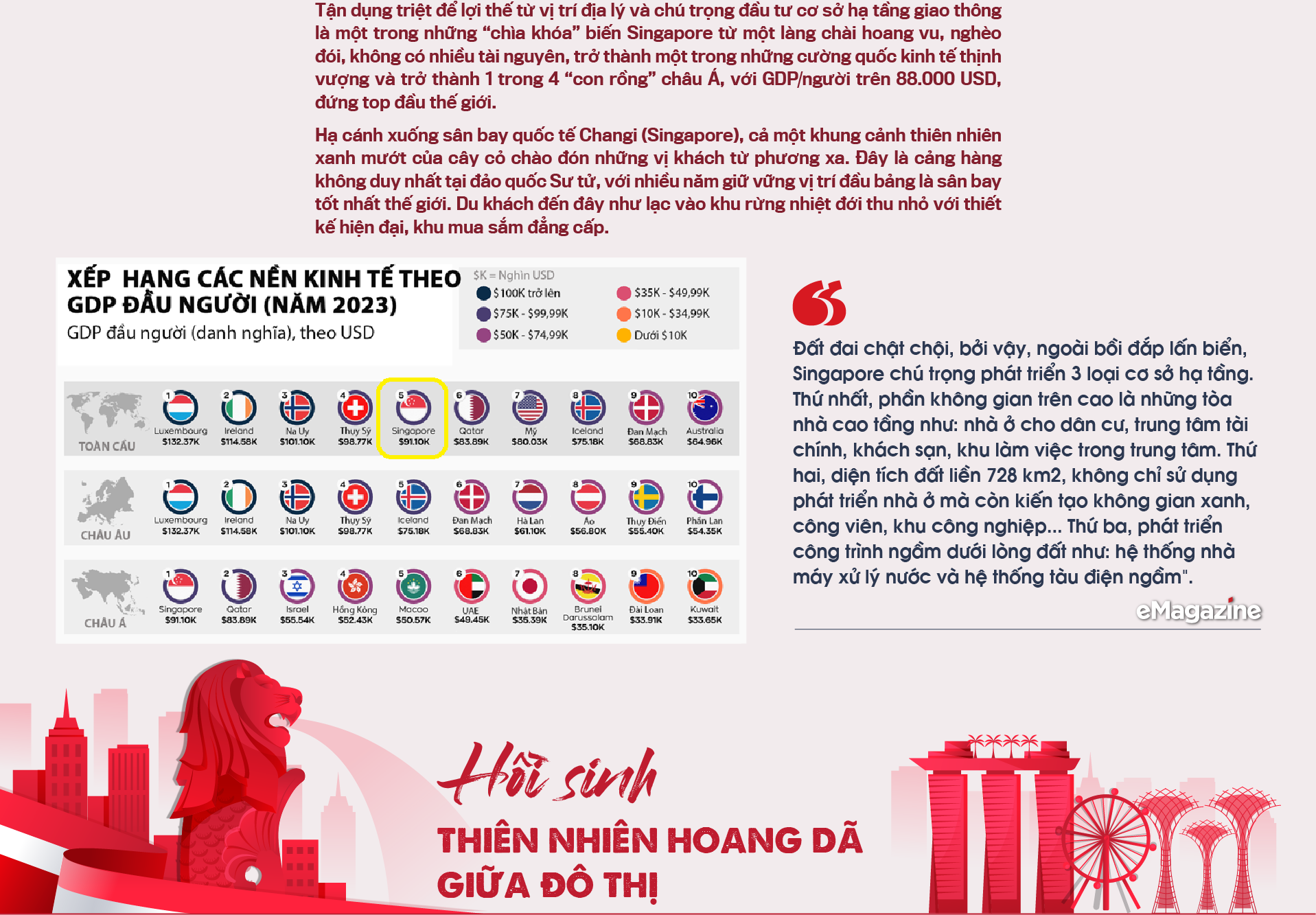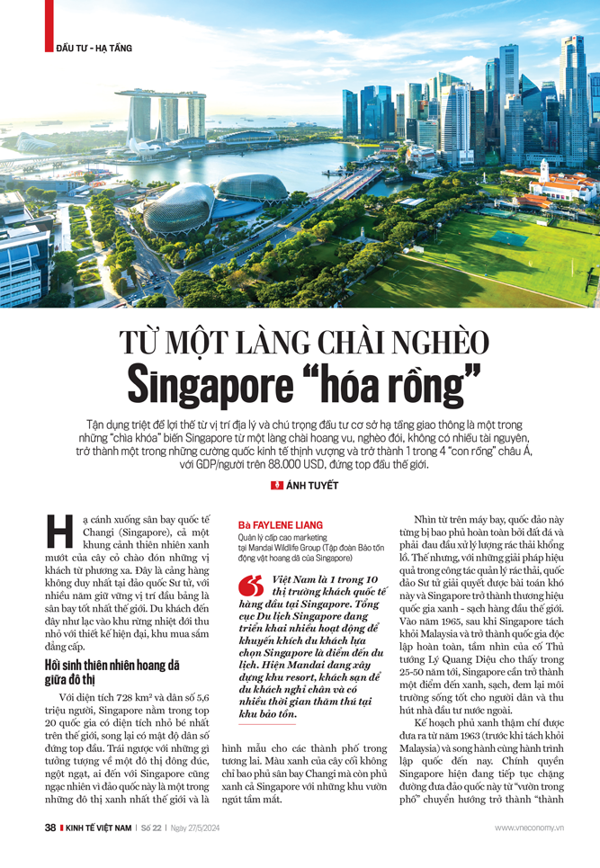 Thông qua việc không ngừng theo đuổi sự tự do, đa dạng hóa kinh tế, chú trọng phát triển nguồn nhân lực cũng như đầu tư thích đáng phát triển cơ sở hạ tầng, trong đó điểm nhấn là hạ tầng giao thông, Singapore trở thành biểu tượng của sự thành công. Hiện Singapore đang viết chương tiếp theo cho câu chuyện tăng trưởng phi thường và củng cố vị thế là một trong những quốc gia phát triển hàng đầu sau khi tân Thủ tướng Singapore Lawrence Wong nhậm chức giữa tháng 5/2024. Hành trình “hóa rồng” của Singapore để lại cho nhiều quốc gia trong khu vực, bao gồm cả Việt Nam những bài học vô giá.