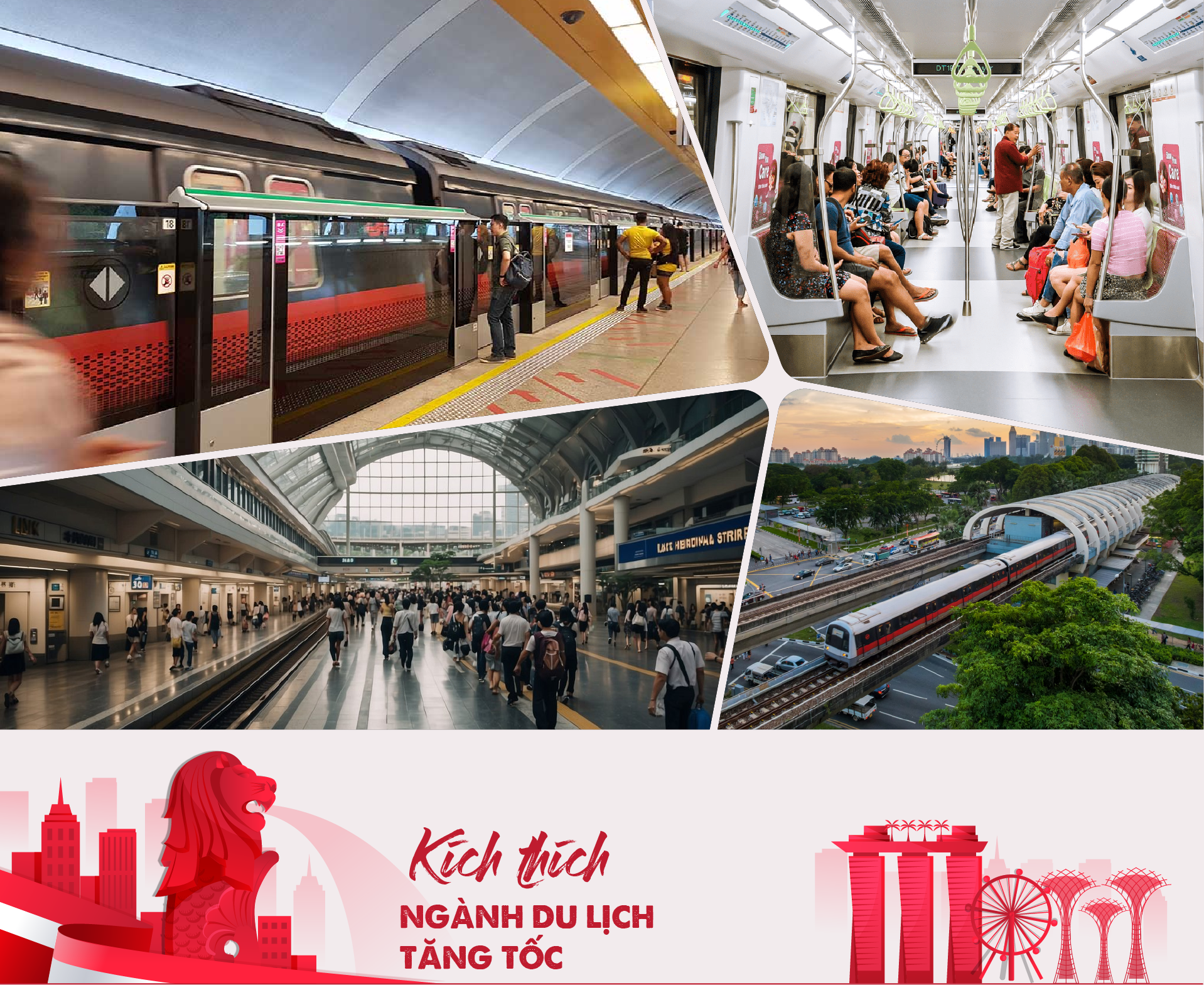 Nằm trong top 20 quốc gia nhỏ bé nhất thế giới, chỉ bằng 1/5 diện tích Hà Nội mở rộng và nhỉnh hơn đảo Phú Quốc, ngay từ đầu, Singapore đã đầu tư thích đáng phát triển cơ sở hạ tầng giao thông để đặt nền tảng vững chắc cho tăng trưởng. Với mạng lưới giao thông công cộng rộng khắp và kết nối thuận tiện, du khách đến Singapore dễ dàng sử dụng tàu điện Mass Rapid Transit (MRT) quy mô lớn hoặc xe buýt để khám phá thành phố.