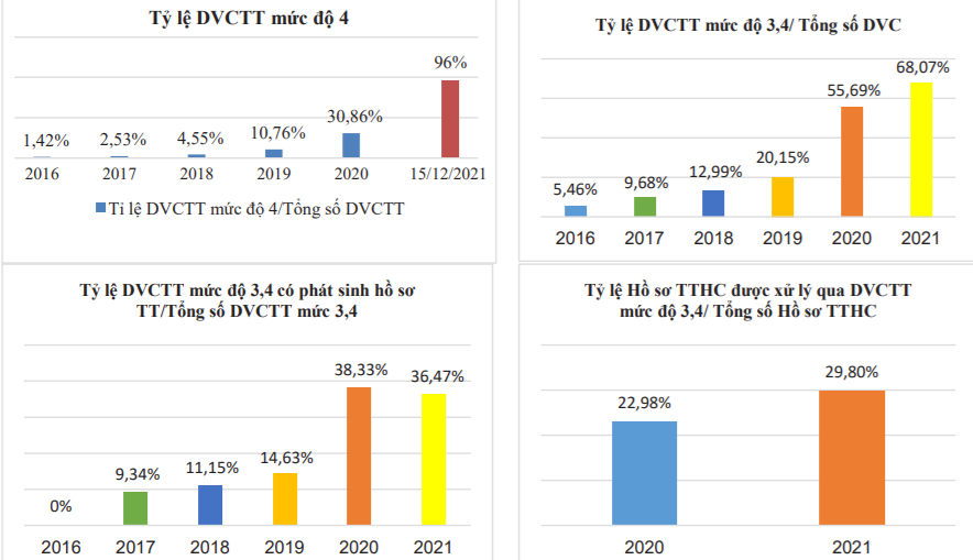 Trong tổng số dịch vụ công cả nước, tỷ lệ dịch vụ công trực tuyến mức độ 3, 4 năm 2021 đạt 68% (khoảng 81.446 dịch vụ). Tỷ lệ này năm 2020 là gần 55,7% và năm 2019 là 20,15%.