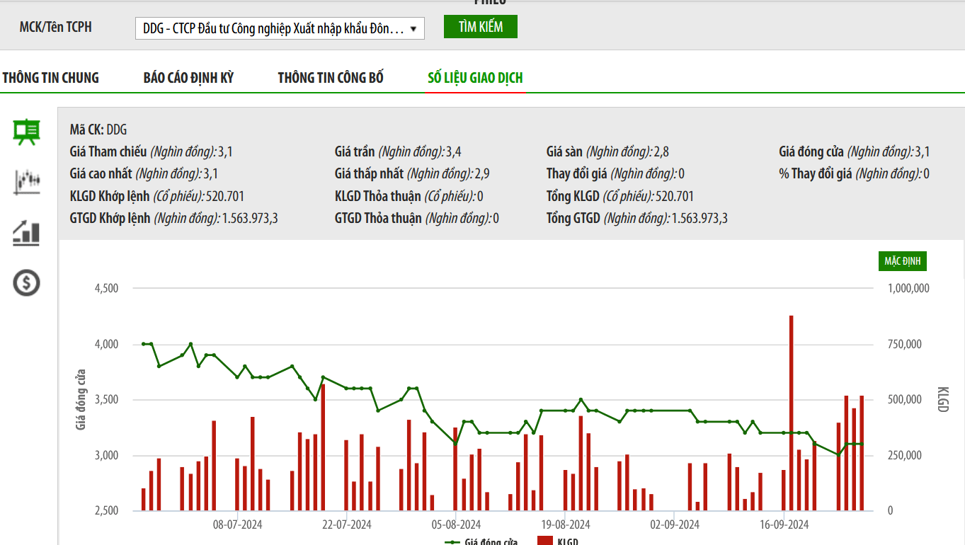 Chốt phiên ngày 26/9, giá cổ phiếu này giảm còn 3.100 đồng/cổ phiếu.