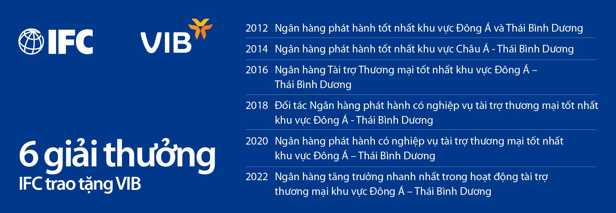 Gần nhất vào tháng 2/2022, VIB nhận giải thưởng Ngân hàng Tăng trưởng Nhanh nhất trong hoạt động tài trợ thương mại khu vực Đông Á và Thái Bình Dương của chương trình. Vừa qua vào tháng 5.2023, IFC cũng chính thức nâng hạn mức tài trợ thương mại, đưa VIB trở thành ngân hàng có hạn mức lớn nhất tại Việt Nam là 200 triệu USD.